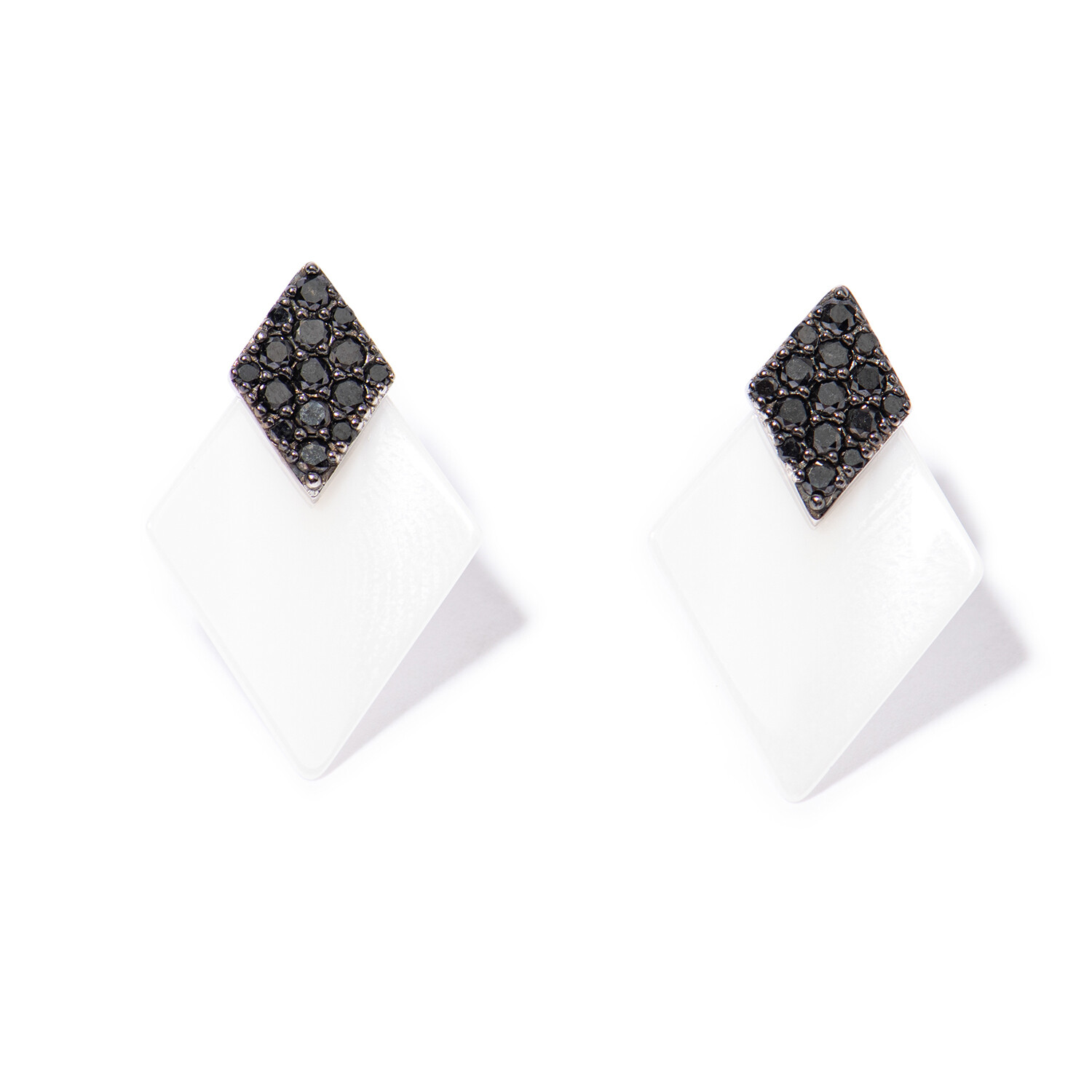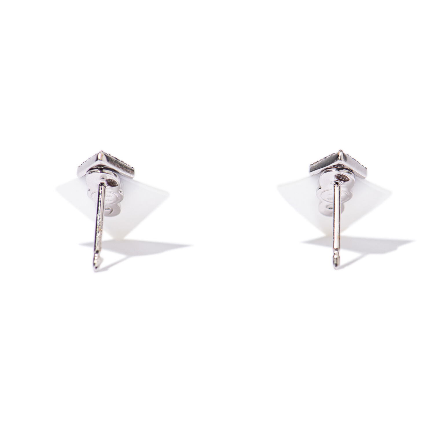 18k White Gold Diamond + White Ceramic Drop Earrings // New