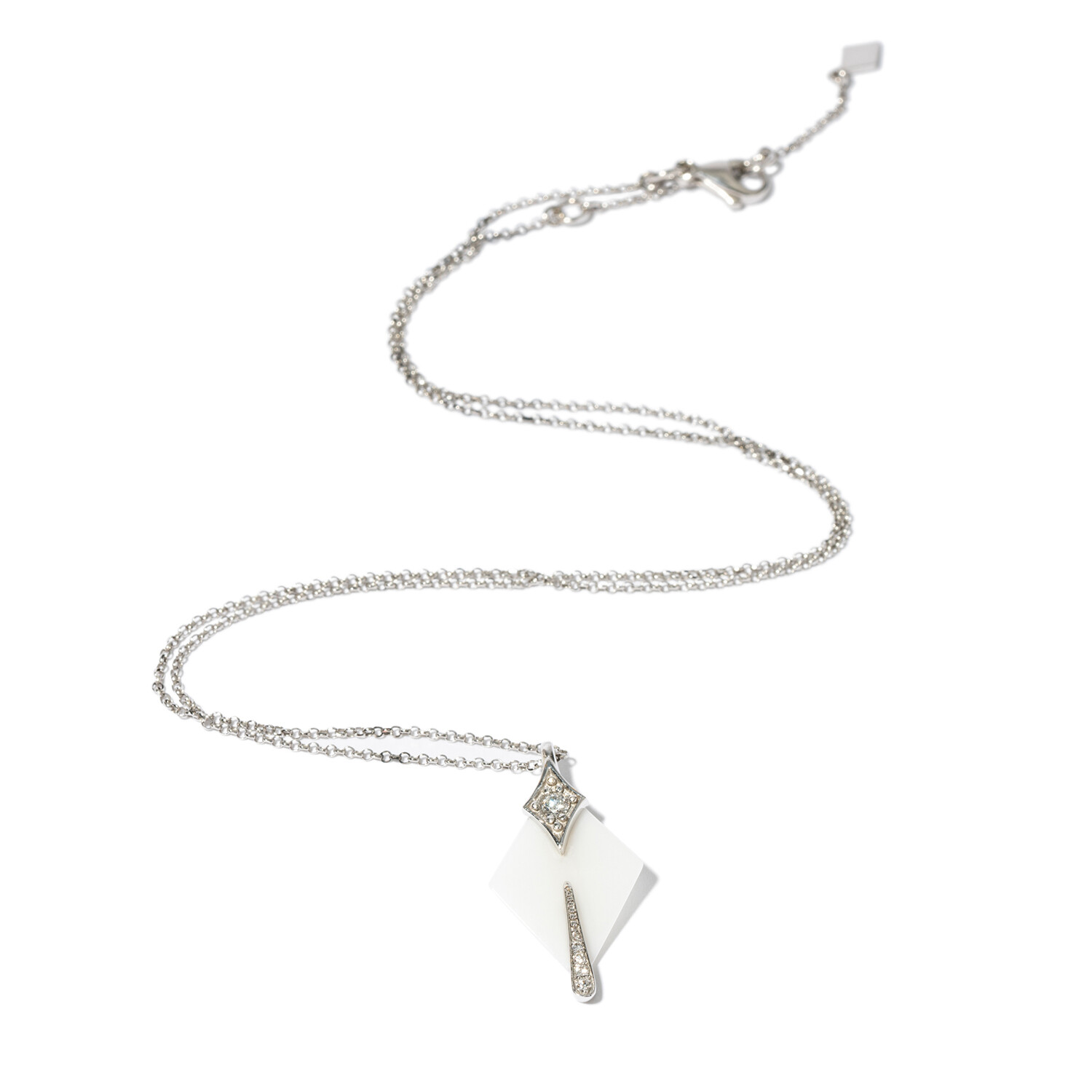 18k White Gold Diamond + White Ceramic Pendant Necklace // 16" // New