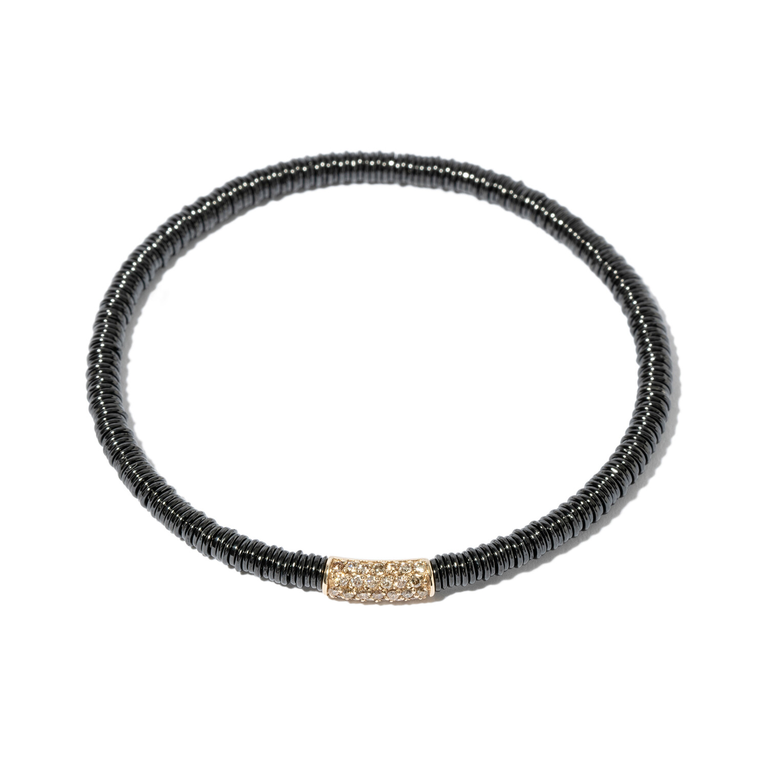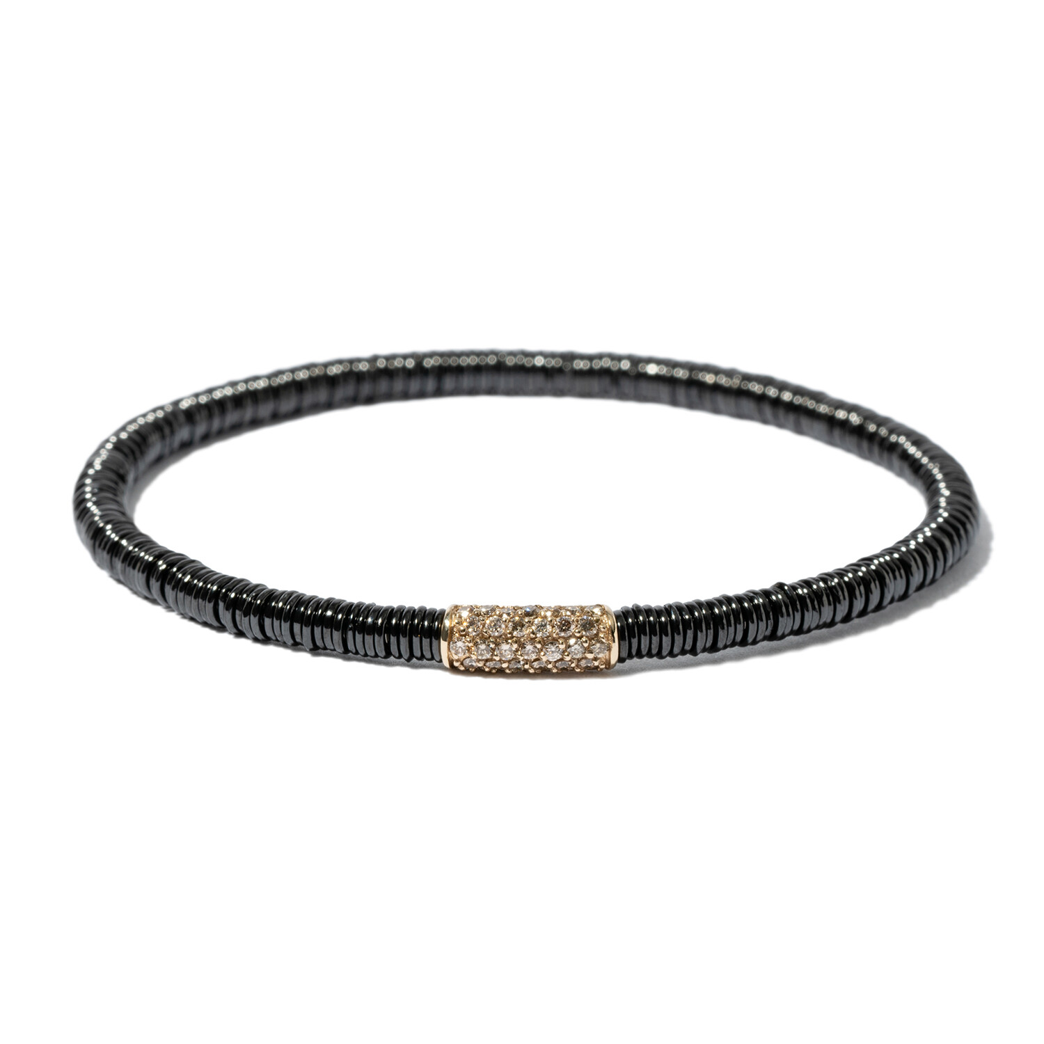 18k Yellow Gold Diamond + Black Ceramic Bead Bracelet // 7" // New