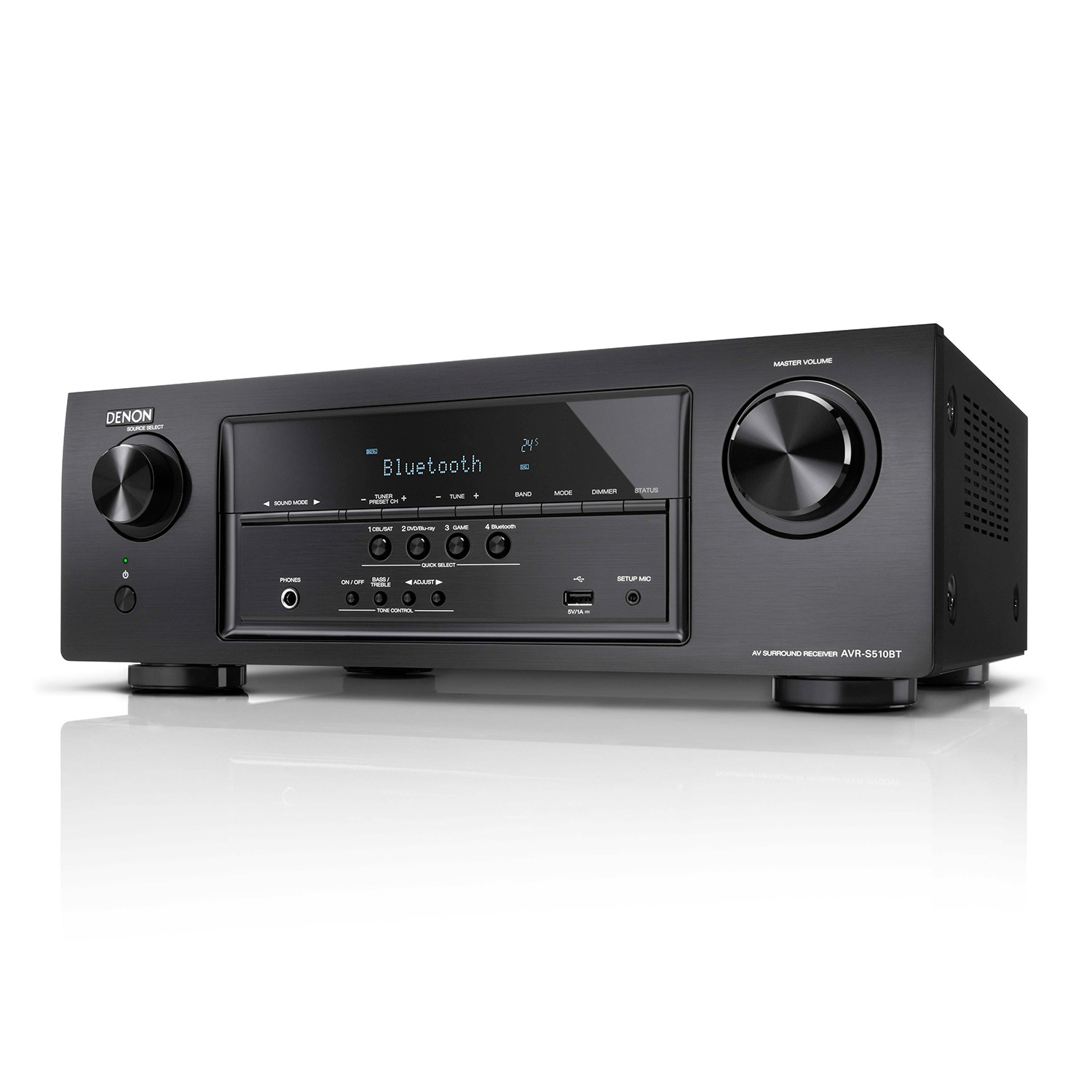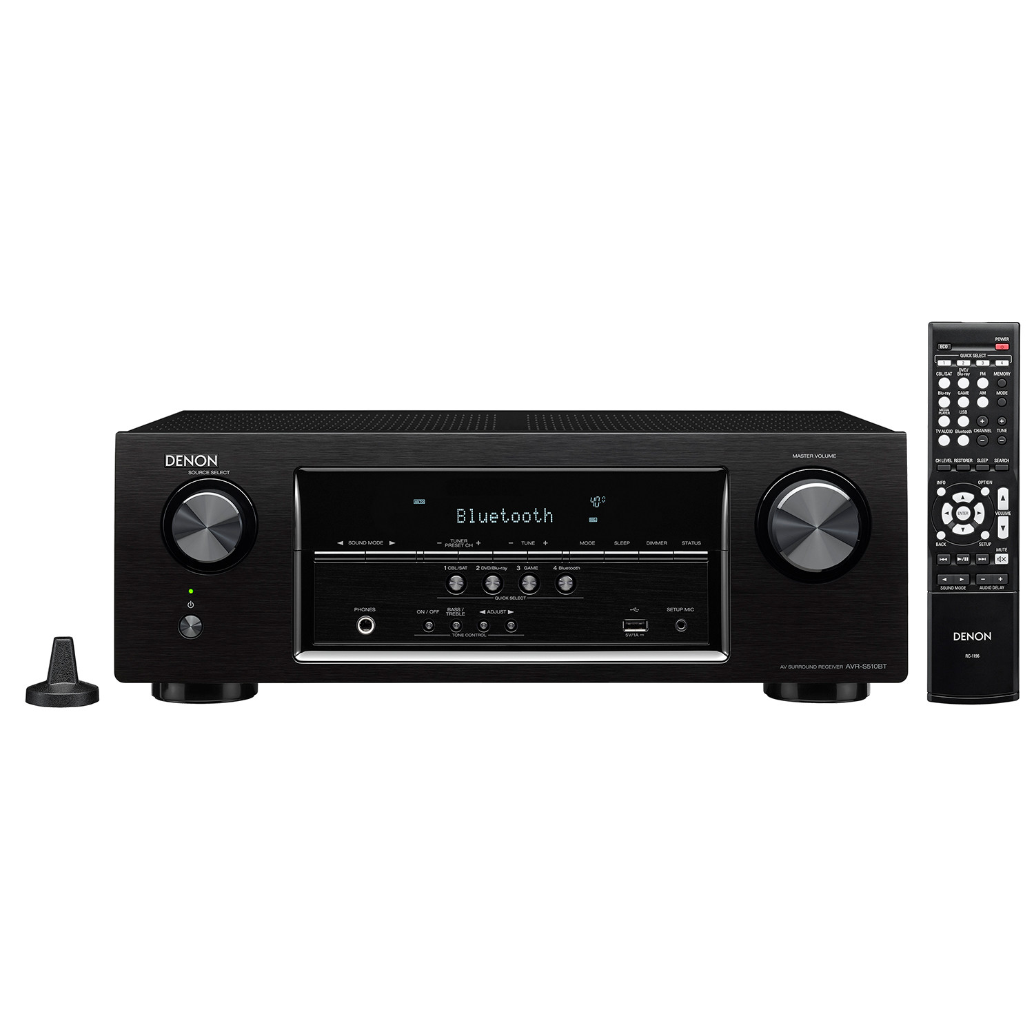 Featuring Bluetooth wireless audio streaming, the AVR-S510BT is also equipped with a convenient USB port on the front panel for streaming your favorite tracks and charging your portable device, and the Denon 500 Series Remote App lets you control the unit via your Bluetooth device. The AVR-S510BT can even remember up to 8 paired Bluetooth devices, so family and friends can listen to their favorite tracks.