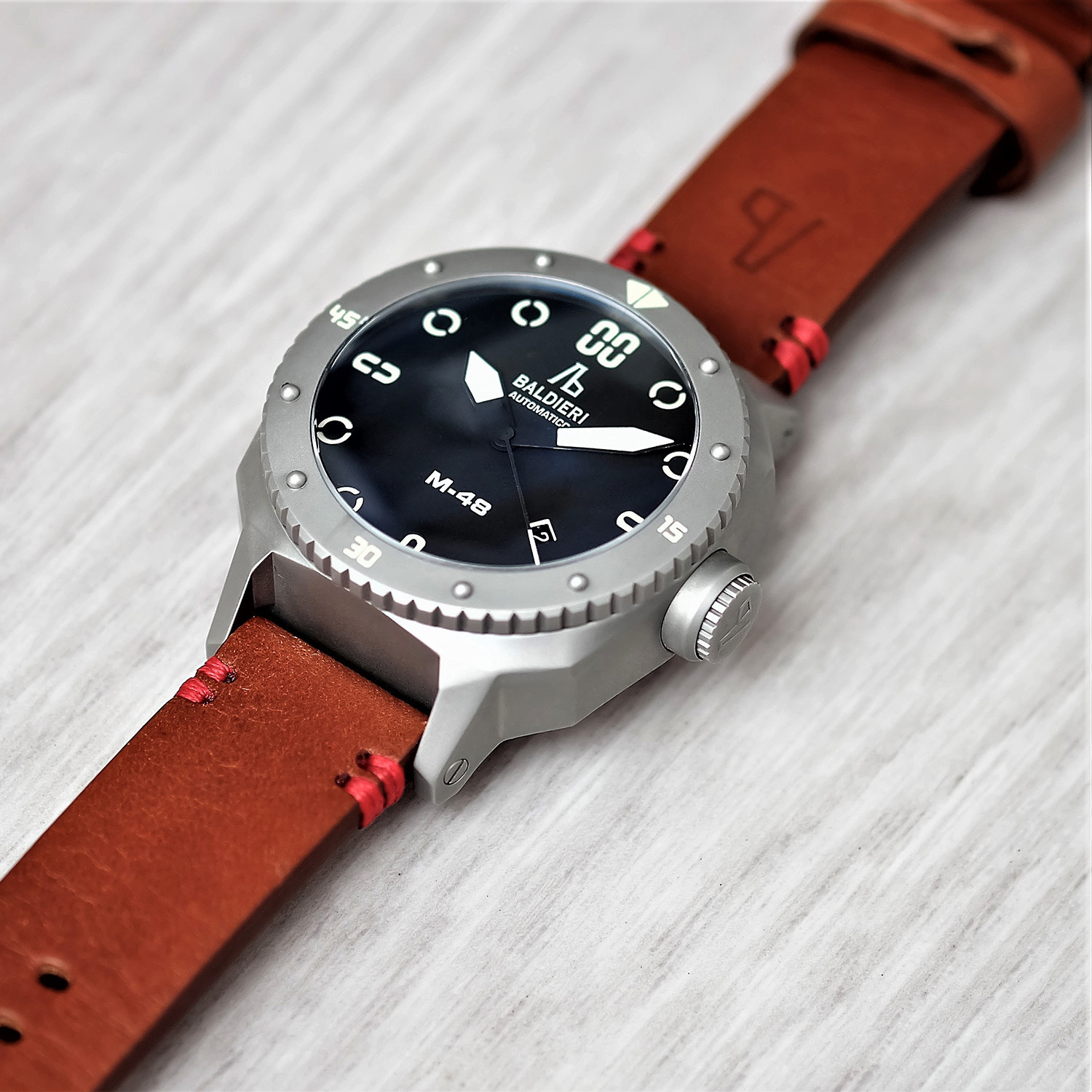 In a limited edition of 150 numbered pieces, the M-48 case is made from a solid 316L stainless steel with print proof finishing. It features an automatic Officine Baldieri movement with 26 jewels, and comes with an Italian ammo leather strap, which has been made by hand and fitted with a stainless buckle.