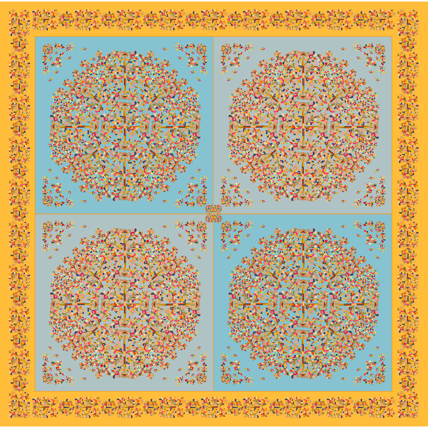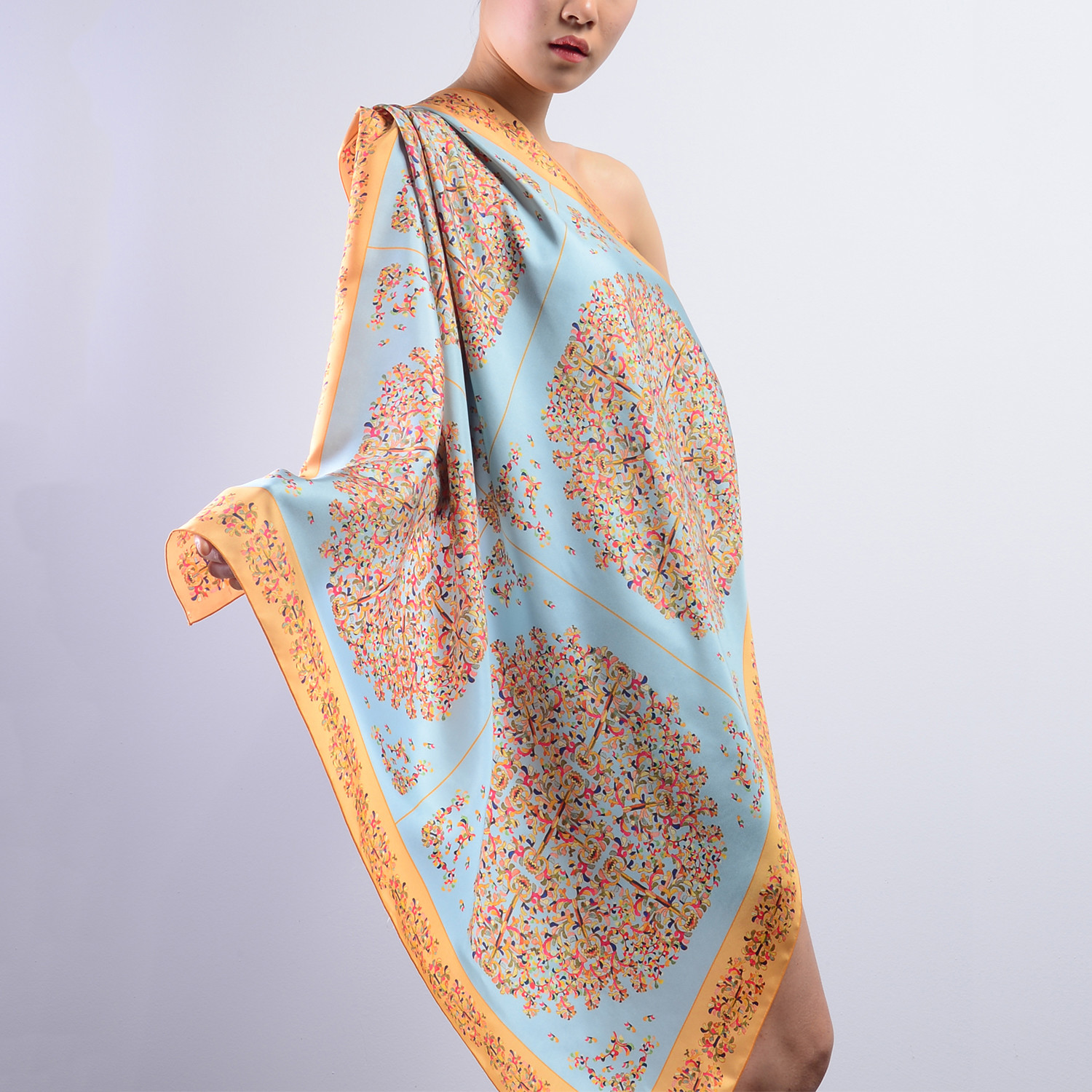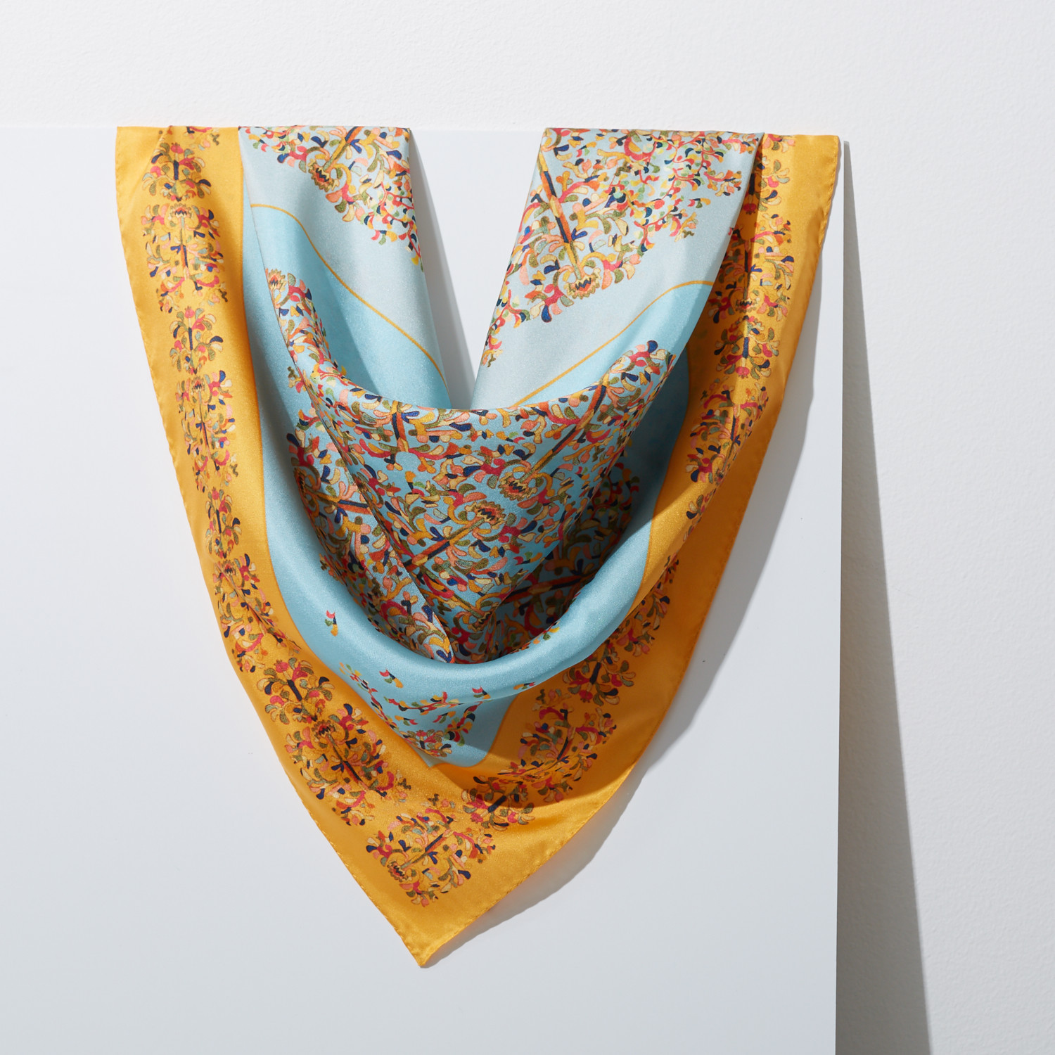 Flower Garden in Chosun Dynasty Silk Twill Scarf // Blue