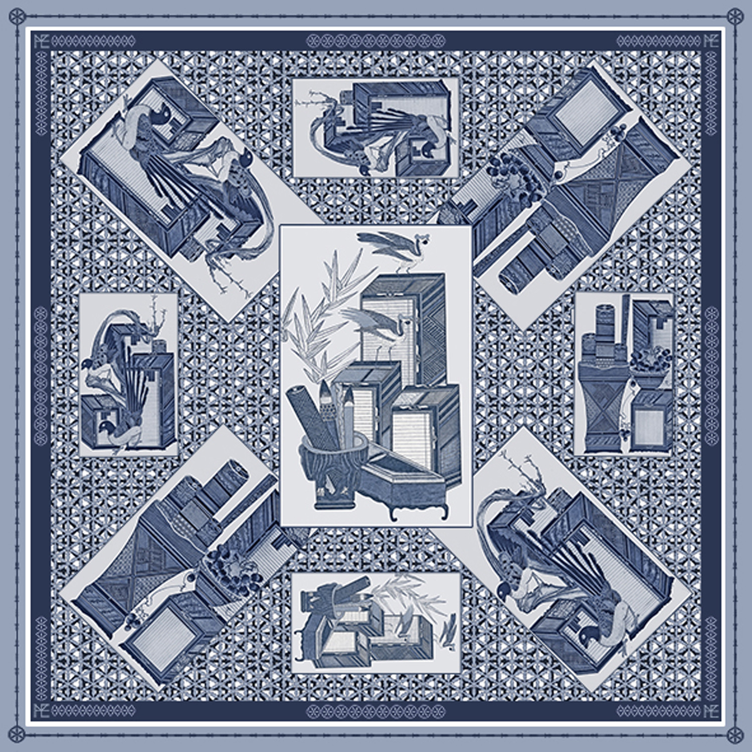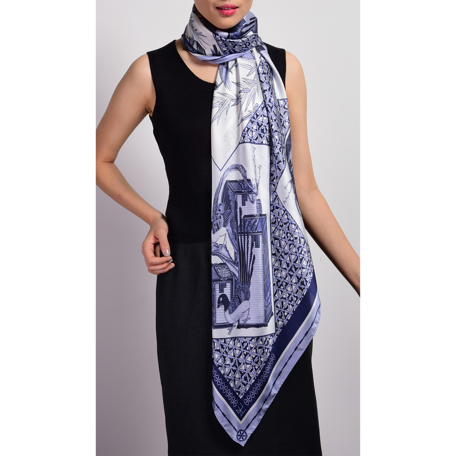 Scholar's Essence in Chosun Dynasty Silk Scarf // Blue