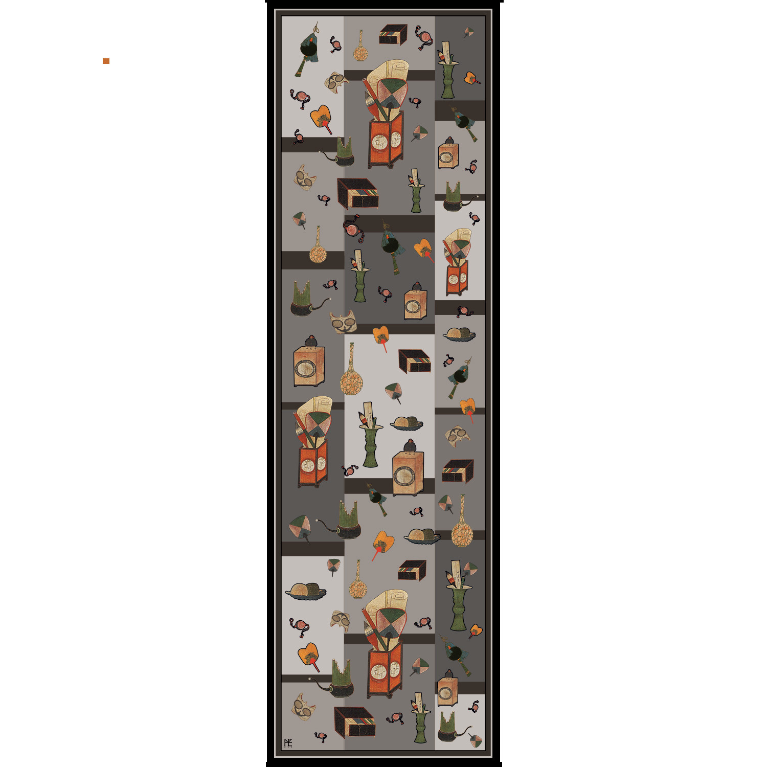 A popular folk painting showing the significance of books and scholarship in the 18th century Chosun politics. Illustration of books on shelves, stationery, folding fans, incense burners, and porcelains used by scholars for their hobbies allows the audience to take a glimpse of the culture that encouraged studious learning.