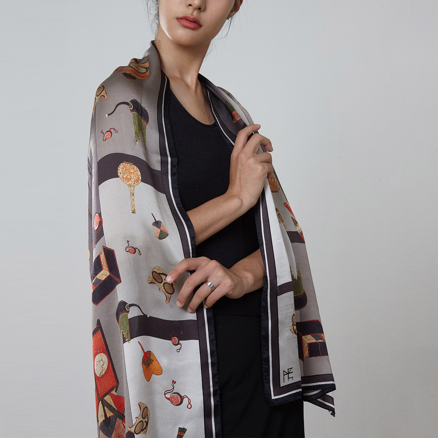 Scholar's Library Silk Scarf // Gray