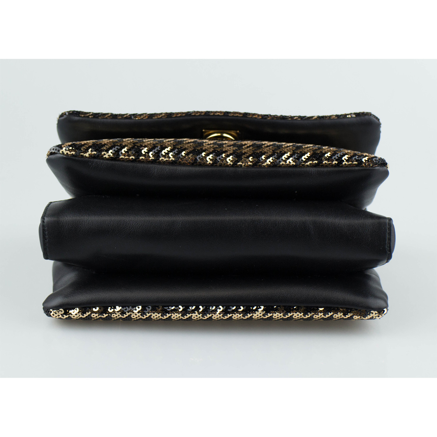 Salvatore Ferragamo // Metallic Mini Vara Flap Shoulder Bag // Black + Gold