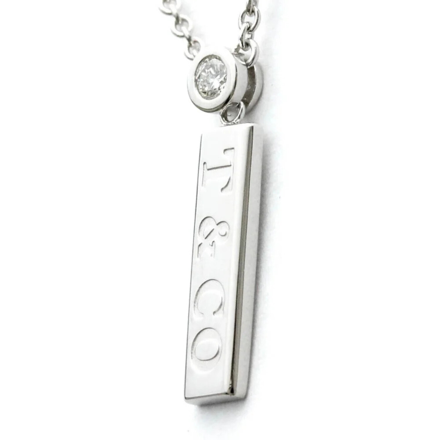 Tiffany & Co. // 18k White Gold Diamond Bar Necklace // 16.14" // Store Display
