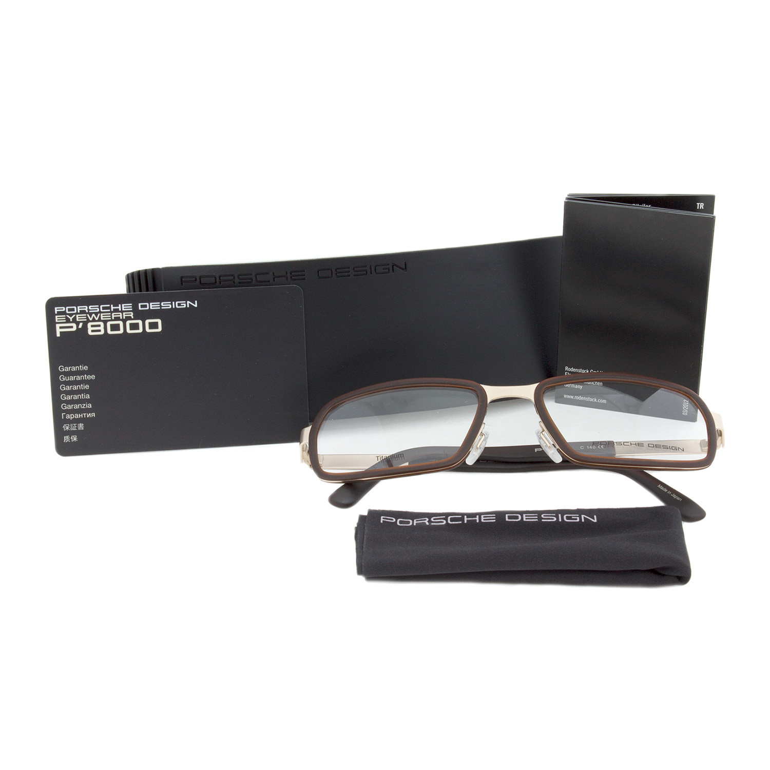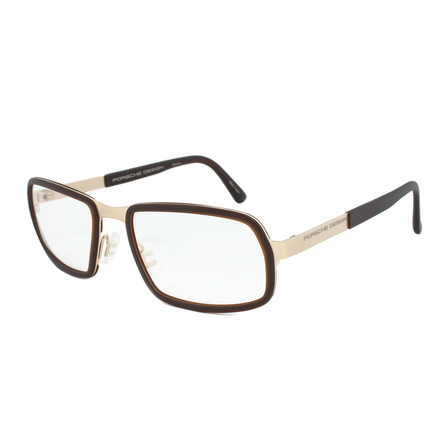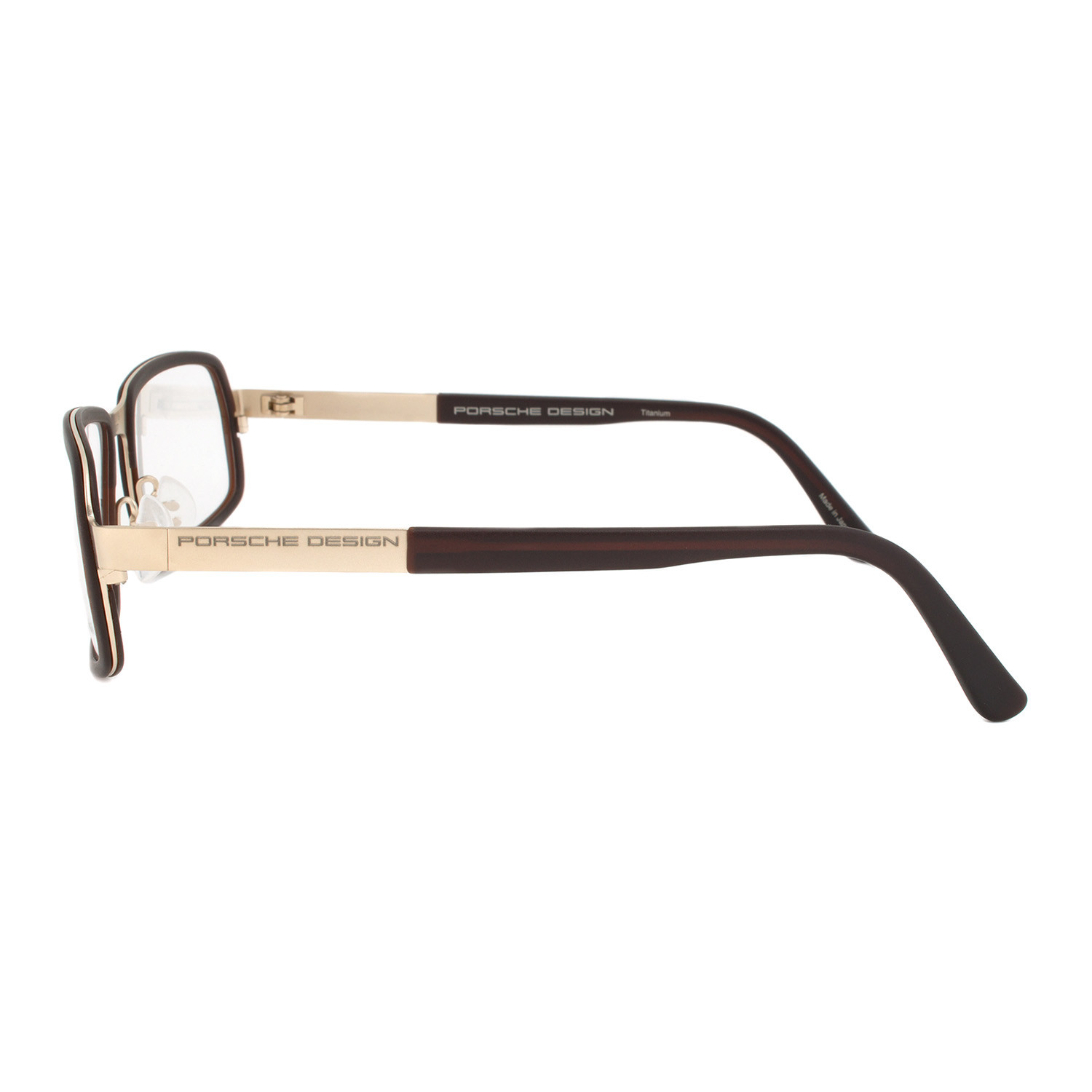 Lightweight and durable, these Porsche Design P8220 C brown soft rectangular full rimmed single bridge prescription rose gold and brown titanium eyeglass frames are endowed with an ultra-modern appearance. This stunning progressive design features rose gold toned titanium arms, inner arm branding and brown eartip extensions. Measuring 56-19-140mm, this item ships with its own distinctive case, demo lenses, cleaning cloth, and manufacturer's documentation.