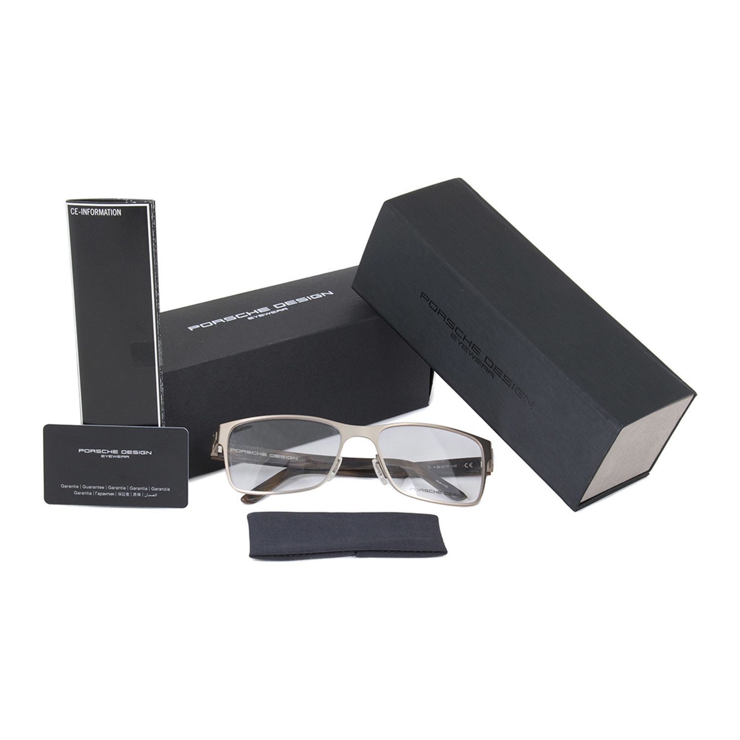 Look sleek and sophisticated in these sporty Porsche P8248 C eyeglasses for men. The elegant square frames bridge and hinges are made with Titanium in matte bronze. The arms are coated with smooth matte Havana plastic with the Porsche Design logo inscribed at the temple. These authentic designer eyeglasses measure 56-17-135 mm and ship with the Porsche lens case and lens cleaning cloth.