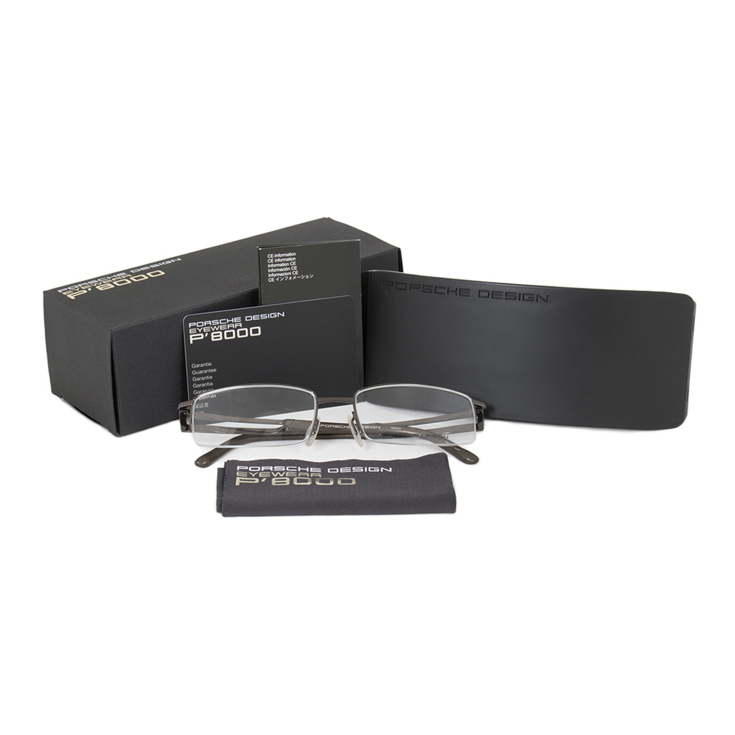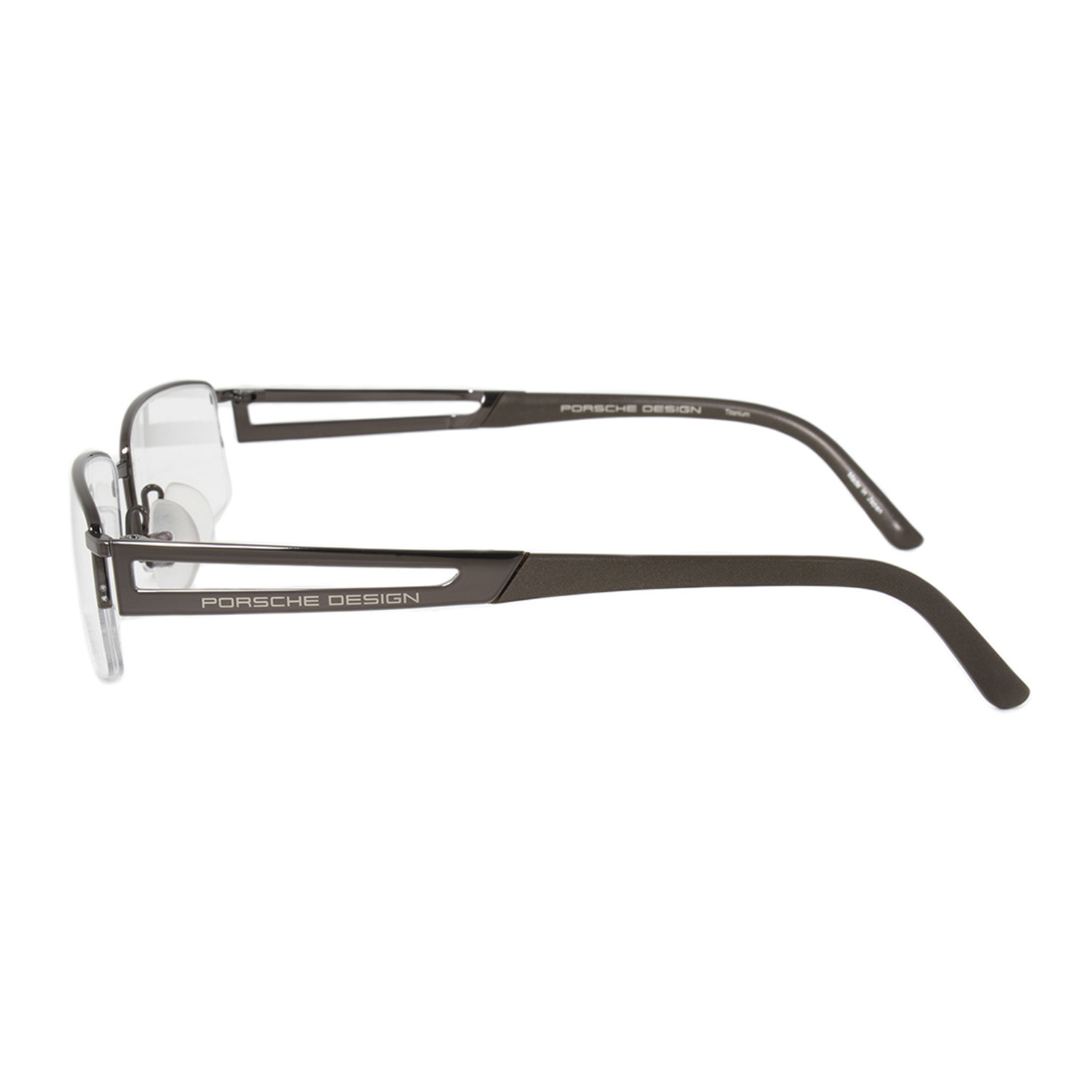 Look sleek and sophisticated in these sporty Porsche P8703 D eyeglasses for men. The rectangular frames are rimless at the bottom and rimmed in shiny dark brown Titanium along the top half through the single bridge and hinges. The slender dark brown Titanium and acetate arms have the Porsche Design logo inscribed at the temple. These authentic designer eyeglasses measure 56-18-145 mm and ship with the Porsche lens case and lens cleaning cloth.