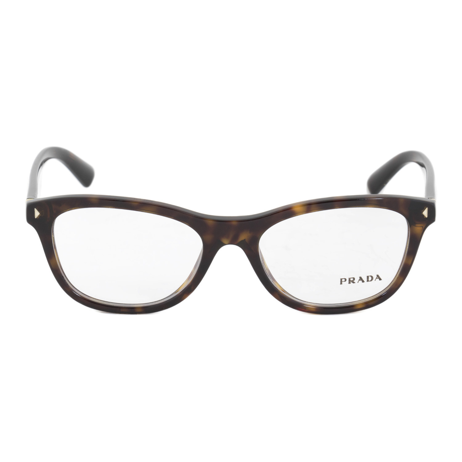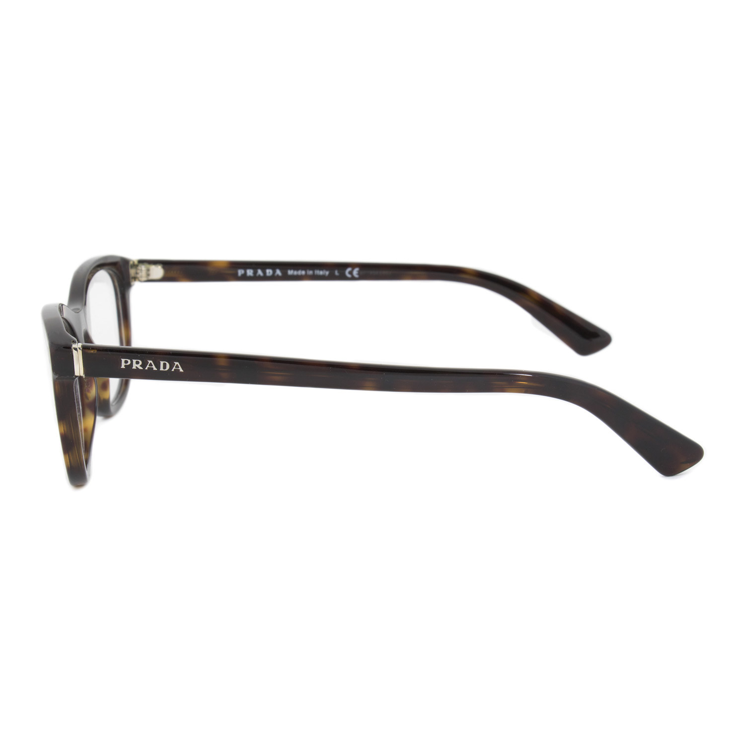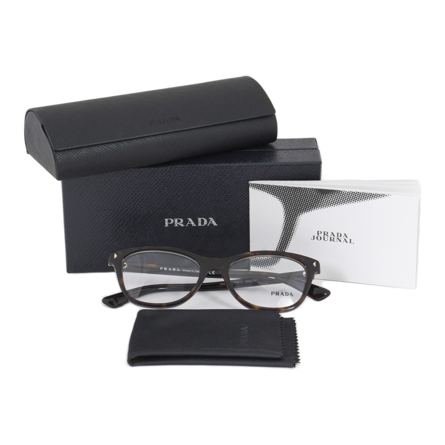 Look literary and sophisticated in these classic Prada PR05RV Journal eyeglasses. The elegant oval frames are full-rimmed in shiny Havana acetate. The arms are also made with shiny Havana acetate and feature the Prada logo at the temples. These authentic designer eyeglasses measure 51-17-140 mm and ship with the branded Prada lens case and lens cleaning cloth.