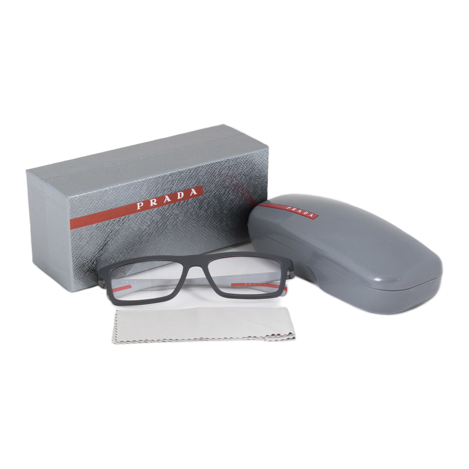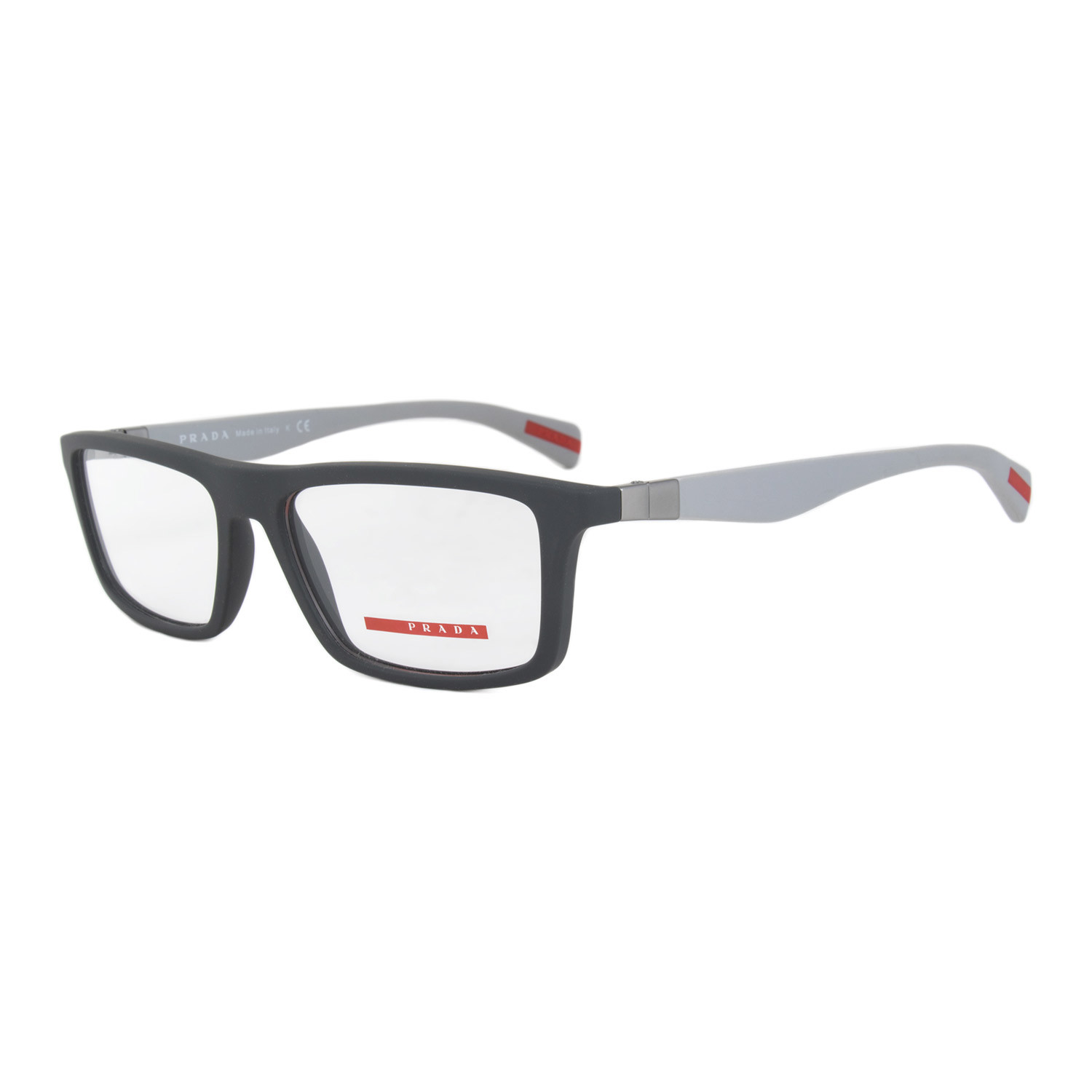Look sophisticated in these unique Prada Sport Linea Rossa 0PS02FV eyeglasses. The elegant rectangular frames are full-rimmed with matte charcoal grey rubber that has a smooth luxurious finish. The sleek arms are a lighter shade of grey and feature the Prada logo at the temples with a red line at the tips for a sporty effect. These authentic designer eyeglasses measure 54-16-135 mm and ship with the branded Prada lens case and lens cleaning cloth.