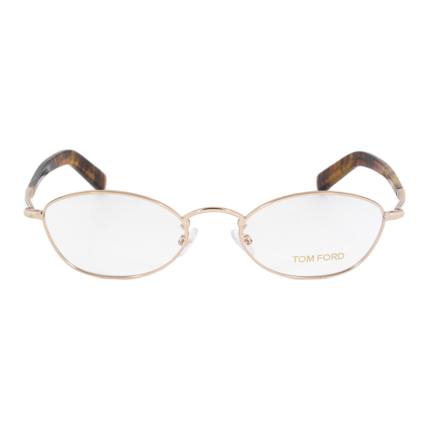 The trends start with you wearing these Tom Ford FT5368 028 Eyeglass Frames featuring an accentuated rose gold full rim single bridge oval frame. The frames are adorned with gold toned T branding overlapping the hinges and are equipped with contrasting havana paddle arms. Measuring 51-18-145 mm, this item ships with its own distinctive case, lens cleaning cloth, demo lenses and designer's documents.