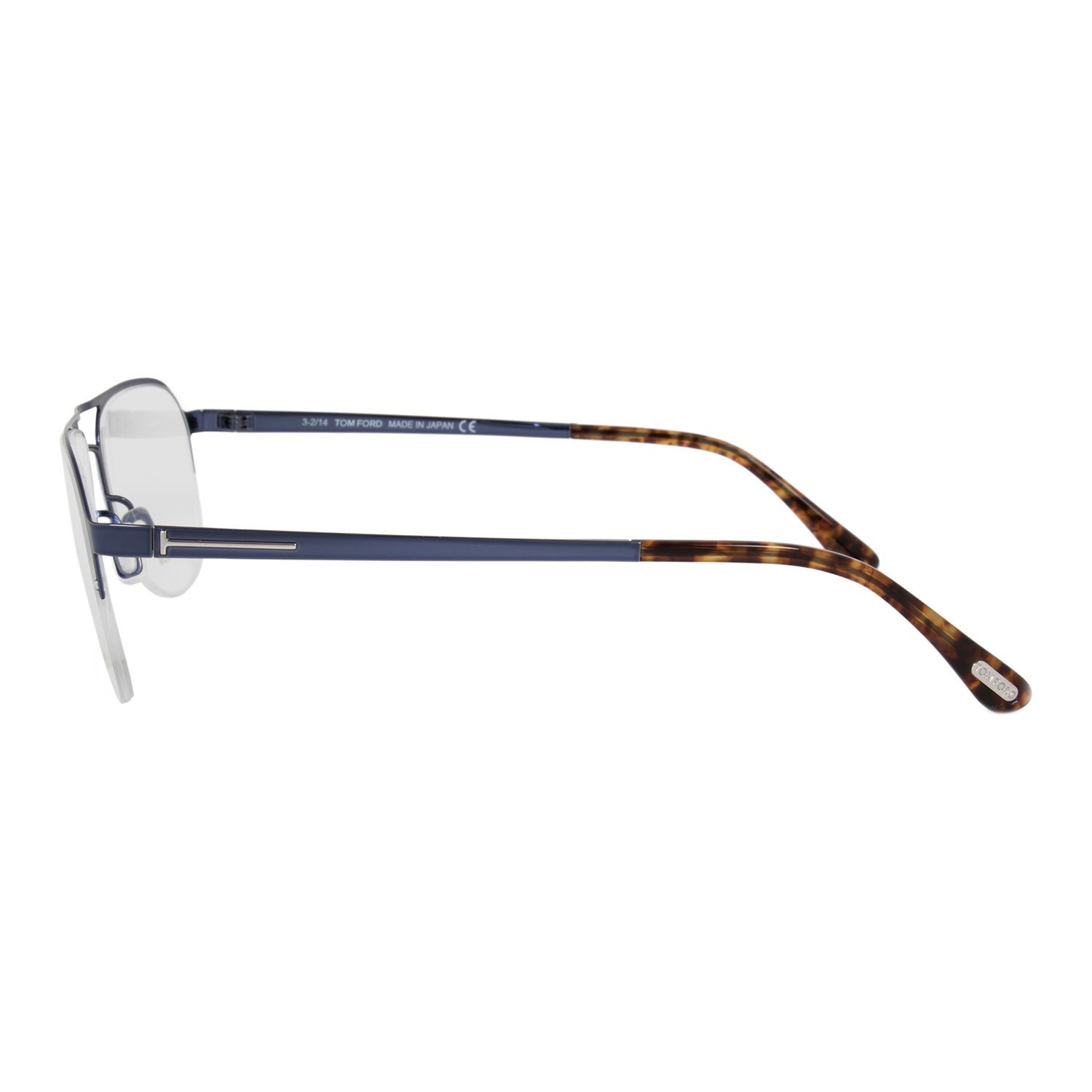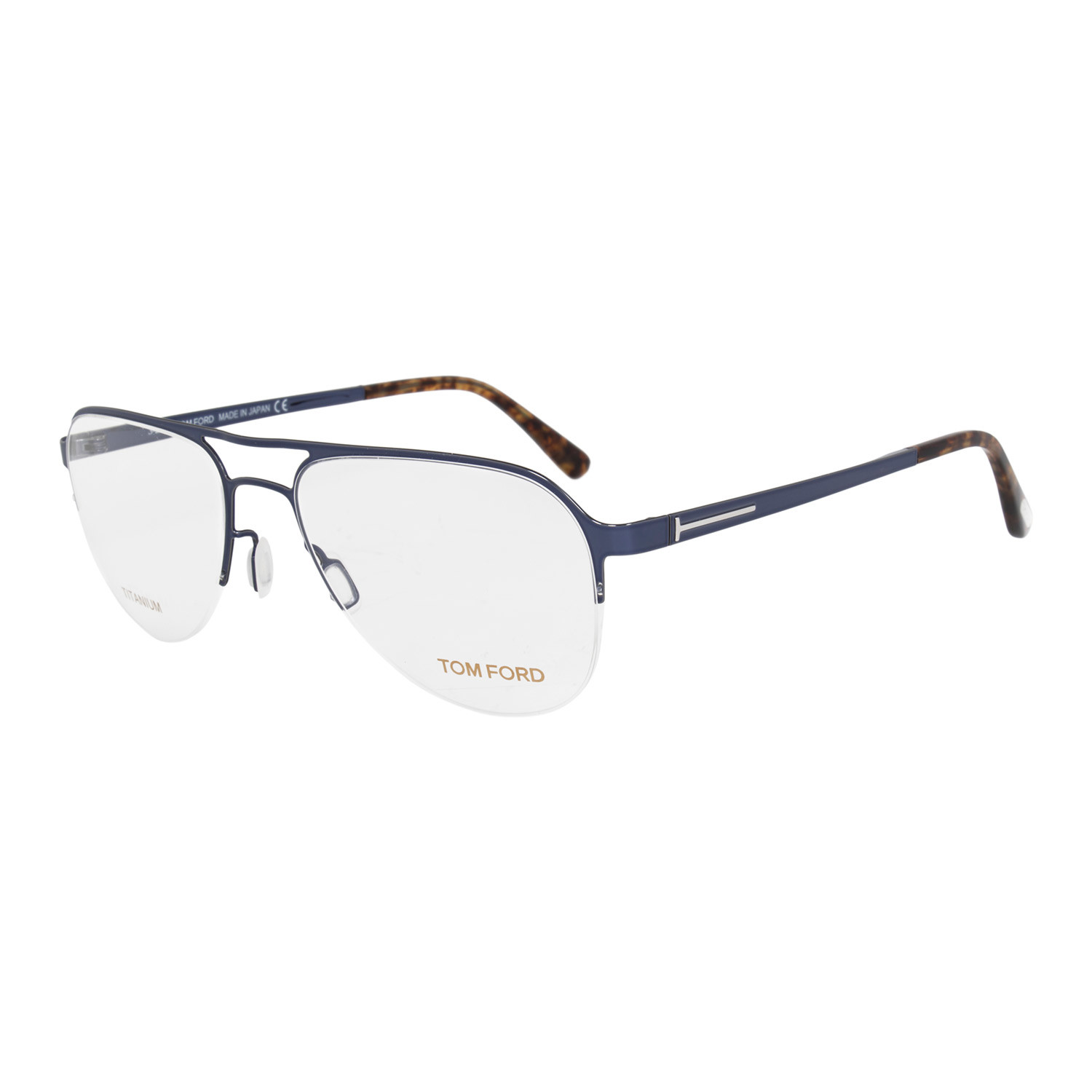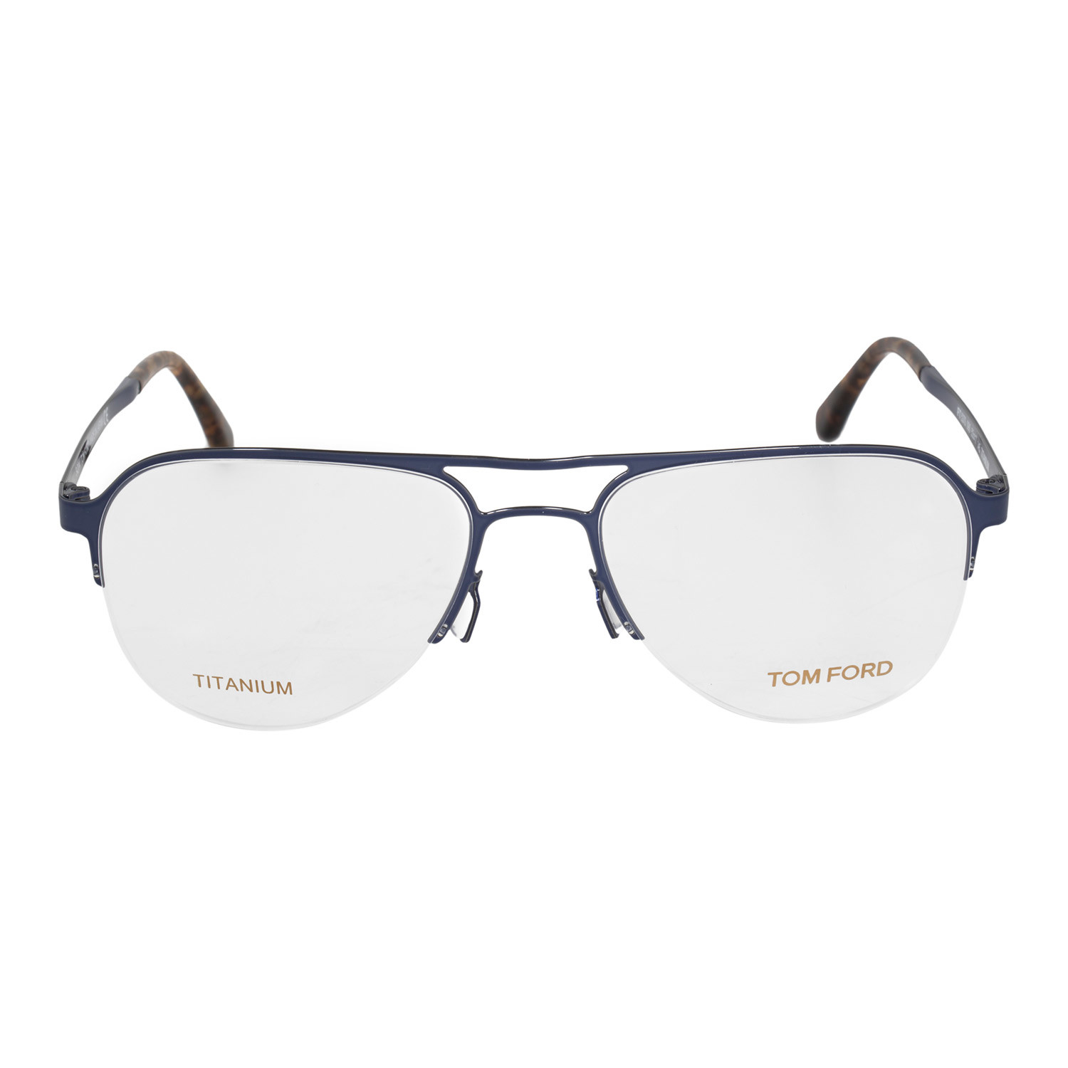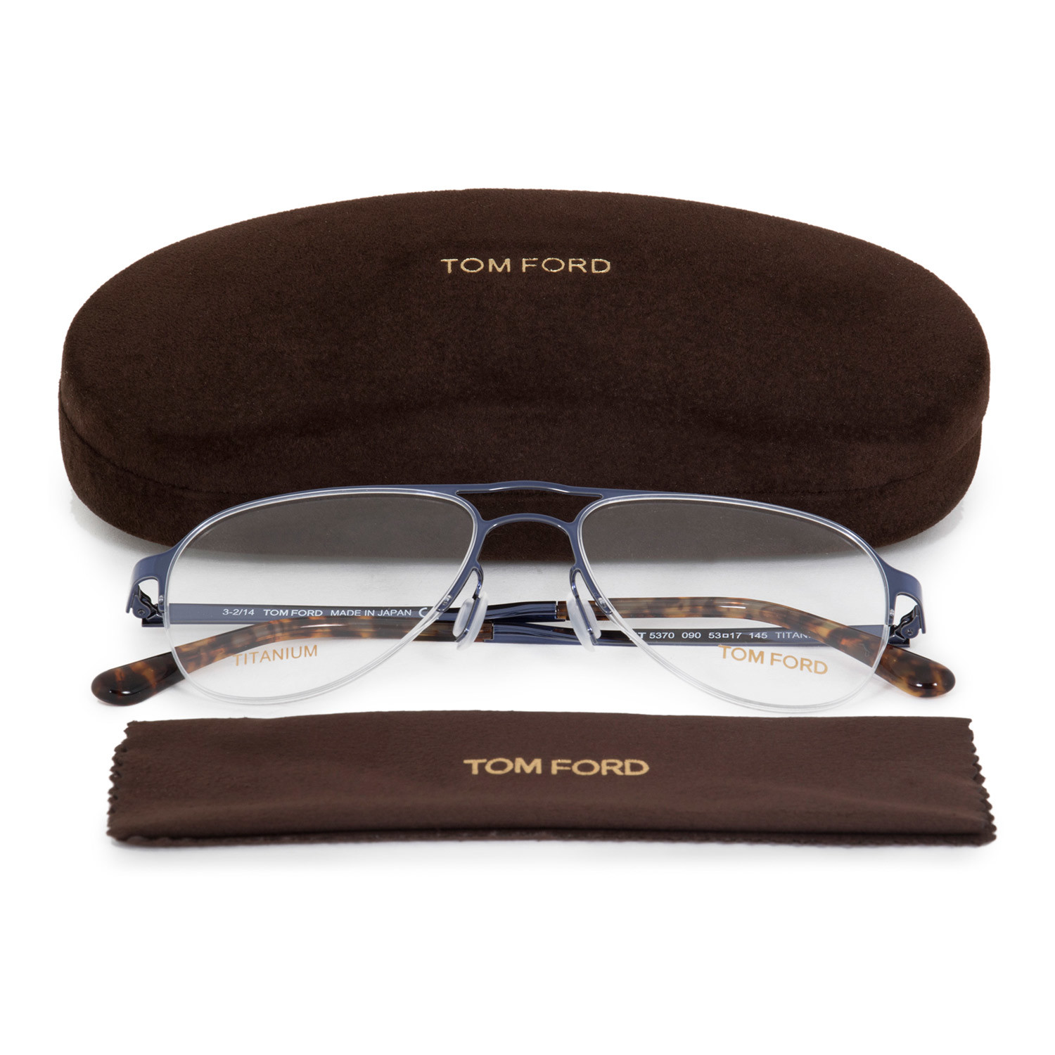 If the retro aviator optical frame has always been a fashion favorite it you're in luck. These Tom Ford aviator FT5370 eyeglasses frames are back in style. These aviator optical glasses are held together by a thin blue titanium metal frame with a double bridge on the upper part of the lenses. The arms also in blue titanium metal have the silver T logo and the edges are dipped in Havana acetate. These elegant eyeglasses measure 53-17-145 mm and ship with the branded Tom Ford case lens cleaning cloth and designers documents of authenticity.