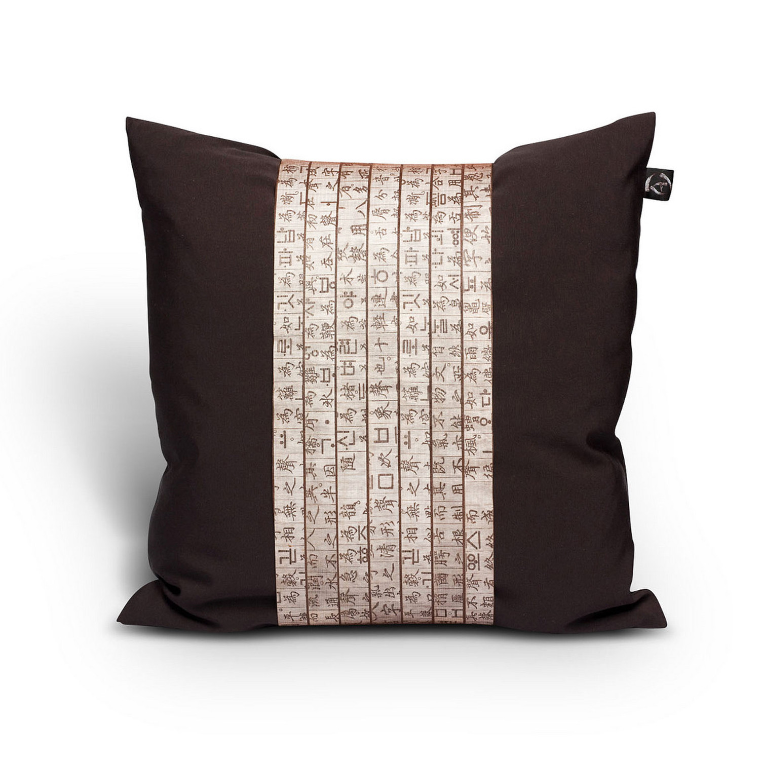 Chinese and Korean characters are lightly wrapped around a polyester and cotton cushion, providing a historical element that brings an exotic atmosphere to your modern living space.