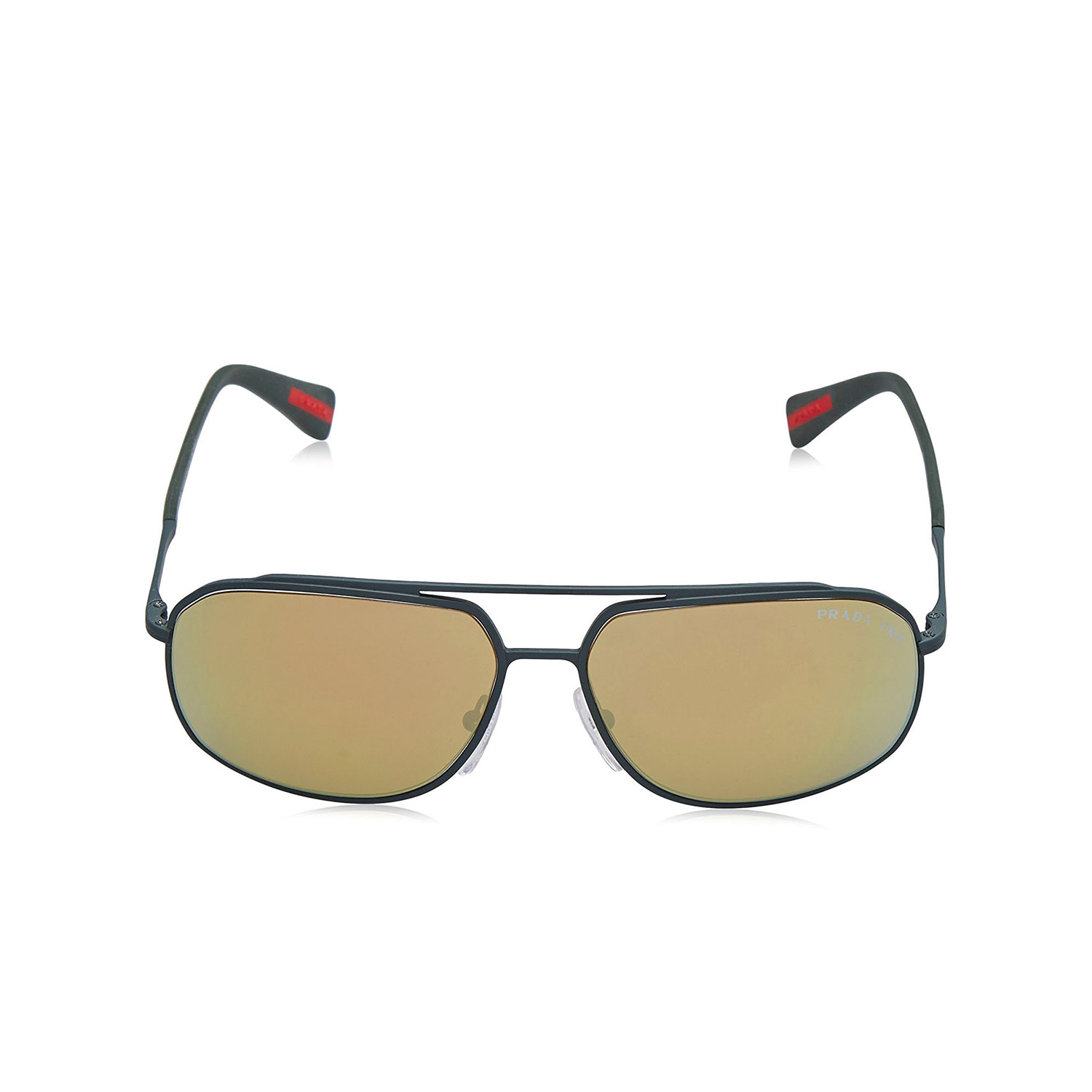 Prada // Men's Polarized Metal Wrap Sunglasses // Dark Matte Green + Orange Mirror Polarized