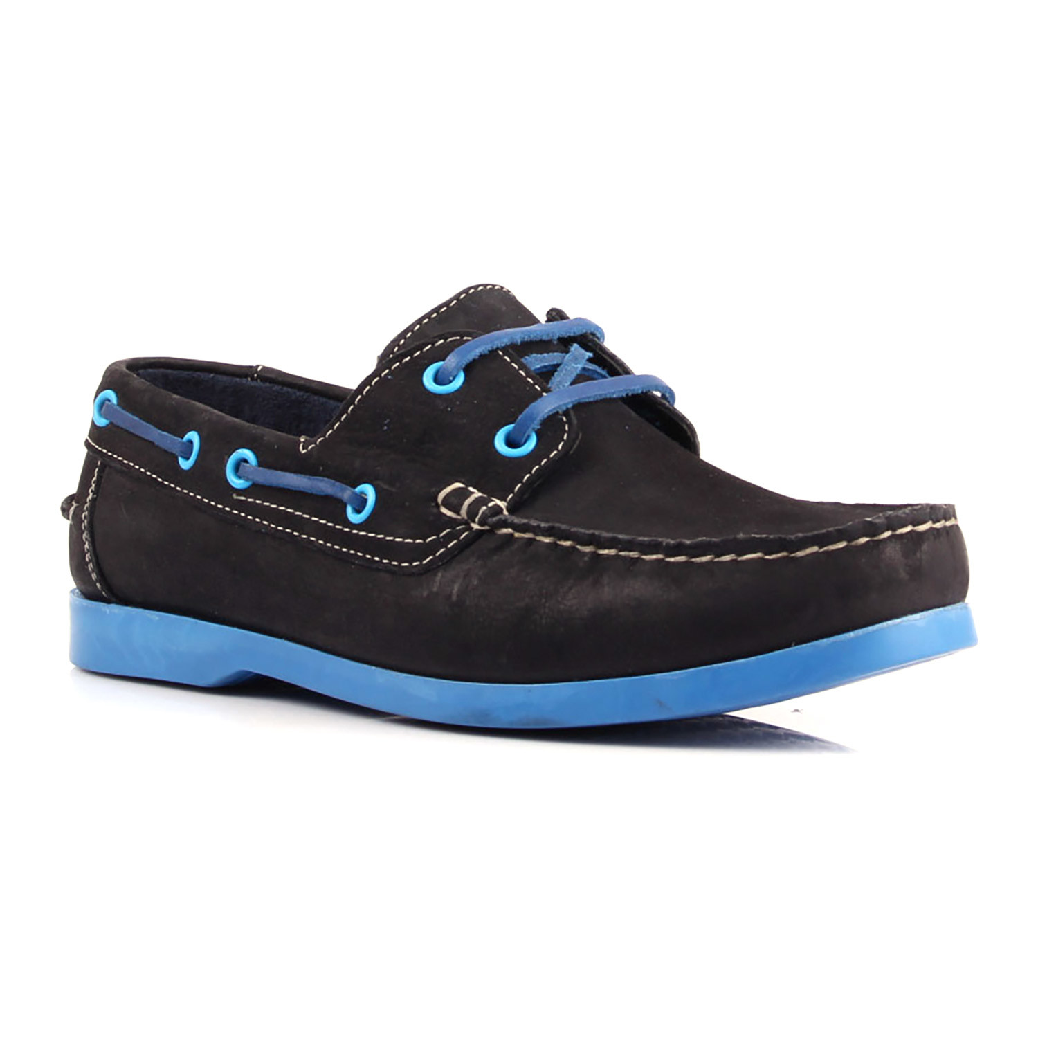 Contrast Stitch Laced Boat Shoe // Black + Blue