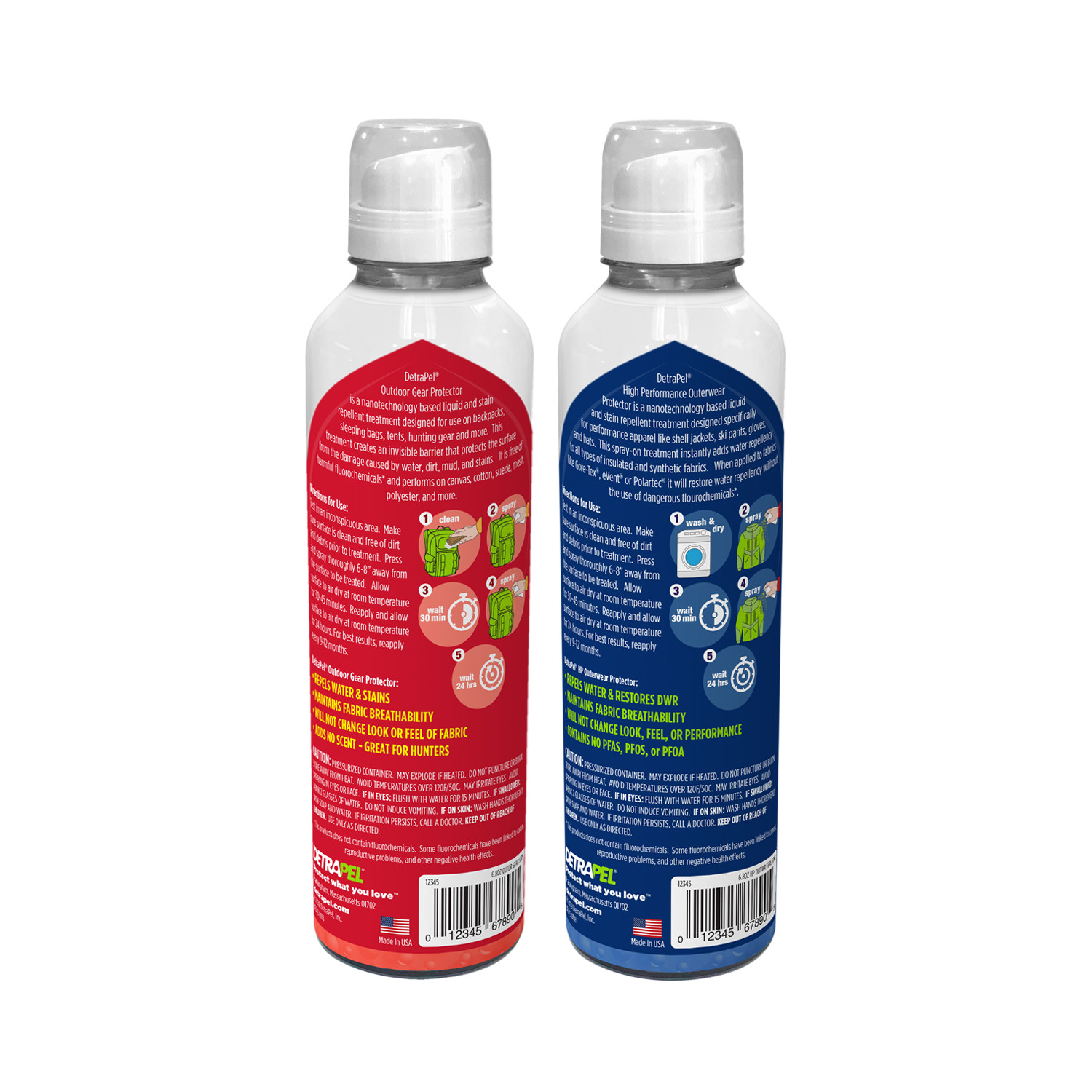 Brave the outdoors in any weather with DetraPel’s Nomad Protector Bundle. This set includes 2 powerful nanotechnology-based treatments that repel liquids and block stains from curbing your off-road adventure. Simply spray your outerwear and outdoor gear for a liquid-resistant barrier that will help keep you drier and warmer longer. Best of all, DetraPel's non-toxic, PFAS-free formulas are better for people, and the planet too. So whether you’re skiing, camping, or base jumping in a wingsuit through the Alaskan mountains, do so with confidence knowing that your dry and breathable comfort will last all day.