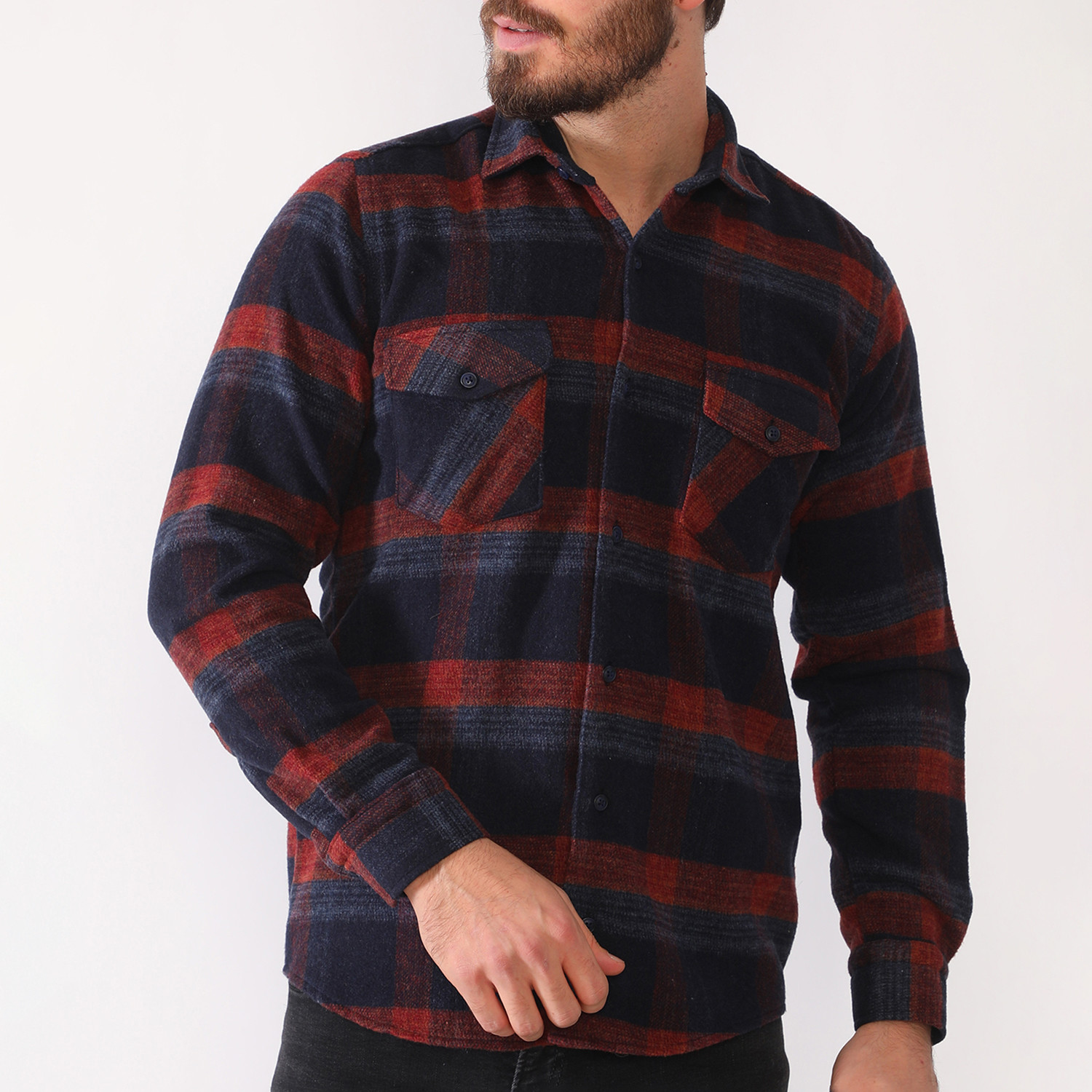 Barnardo Flannel Shirt // Dark Blue + Burgundy