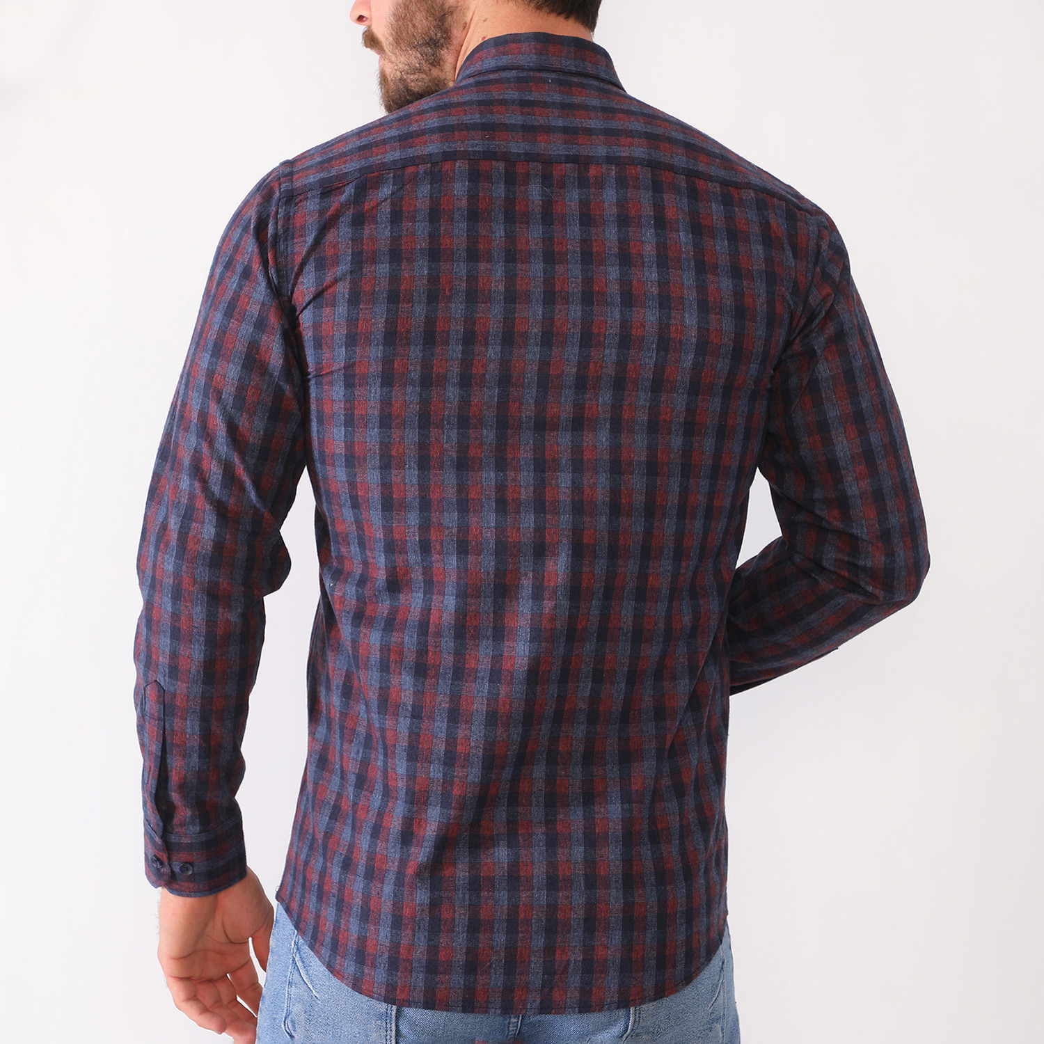 Lance Flannel Shirt // Dark Blue + Burgundy
