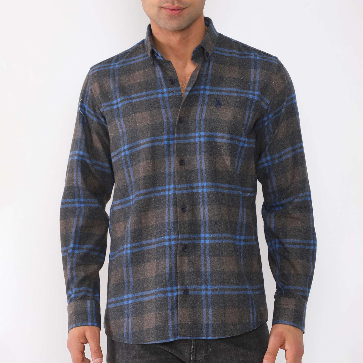 Niko Flannel Shirt // Dark Blue + Brown