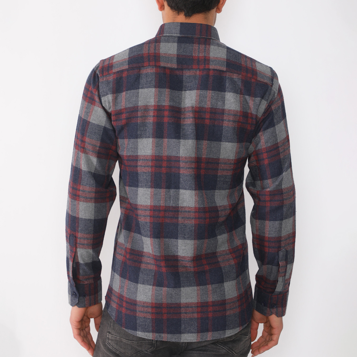 Niko Flannel Shirt // Dark Blue + Burgundy