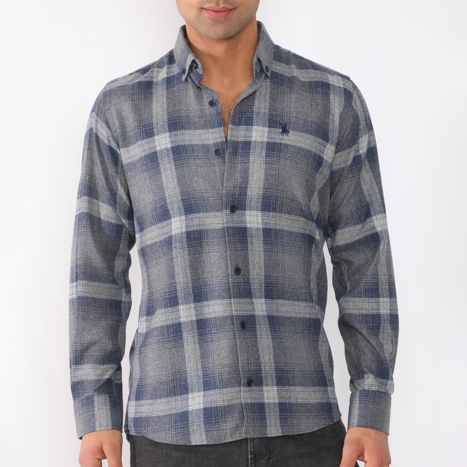 Rowan Flannel Shirt // Gray + Dark Blue