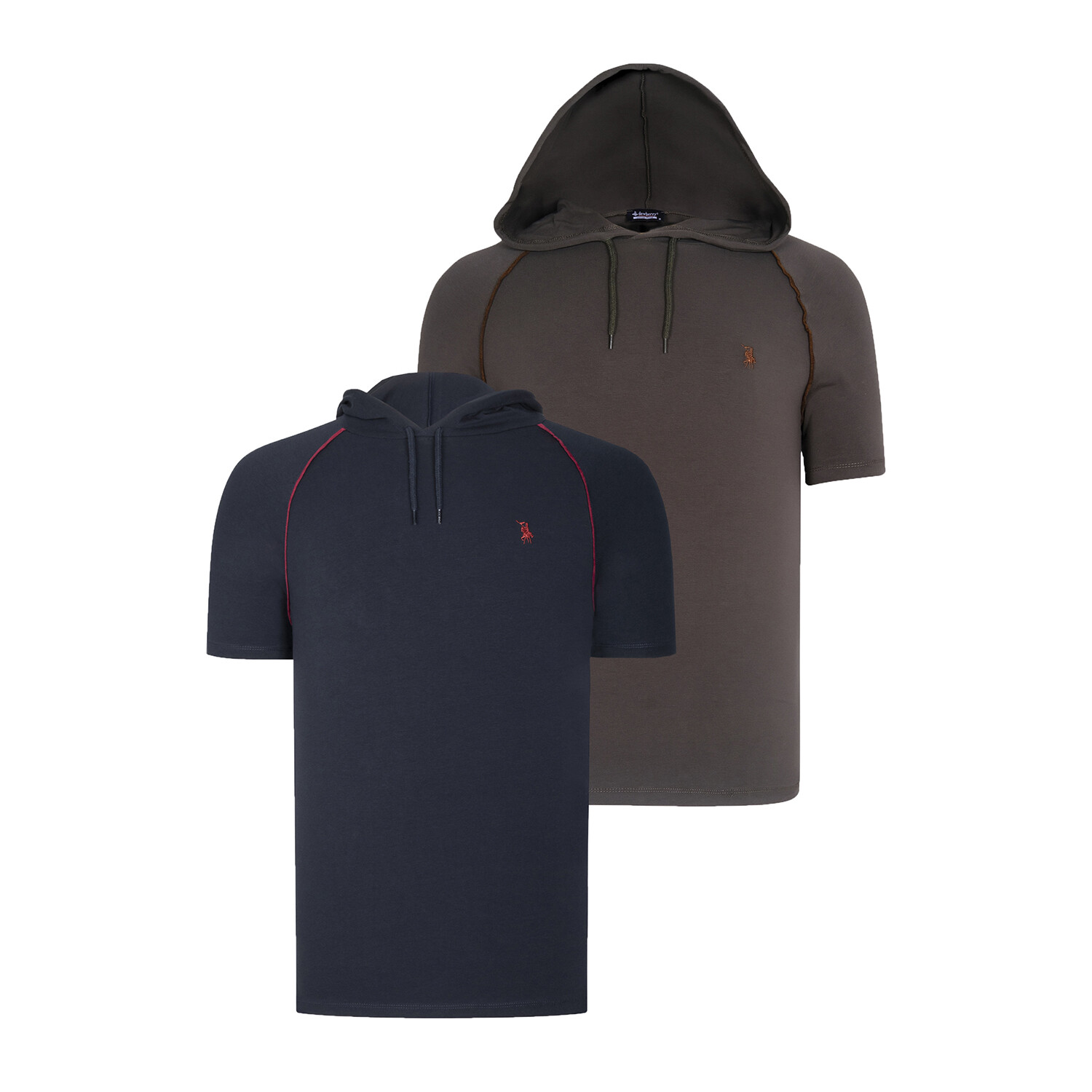Set of 2 Short Sleeve Hoodies // Brown + Dark Blue