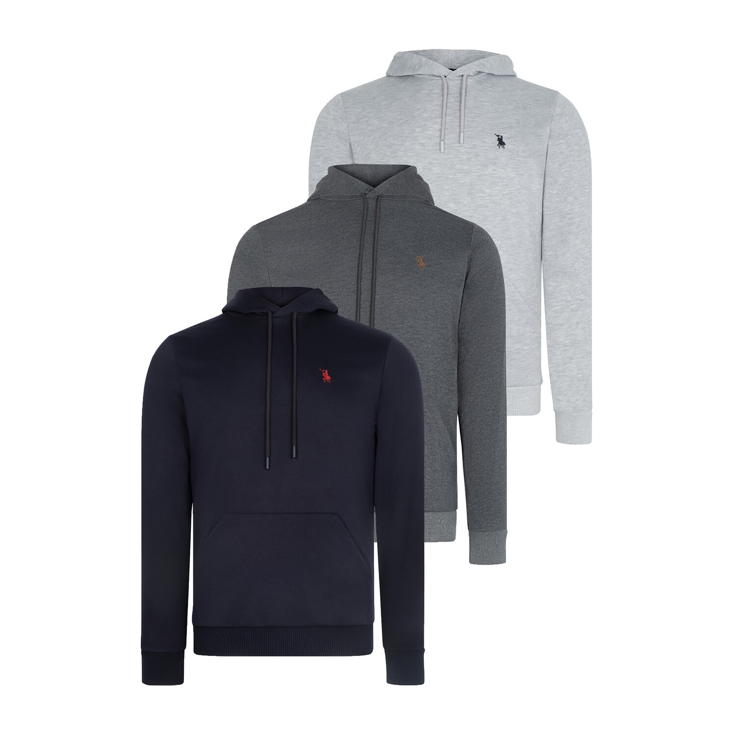 Set of 3 Long Sleeve Hoodies // Gray + Anthracite + Dark Blue