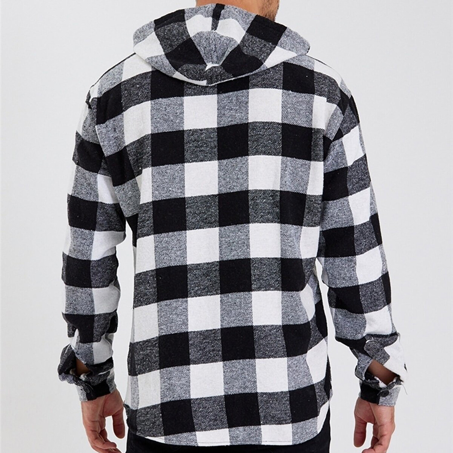 Checkered Hooded Flannel Shirt // Black + White