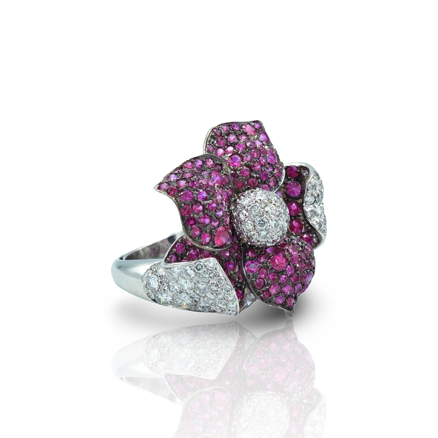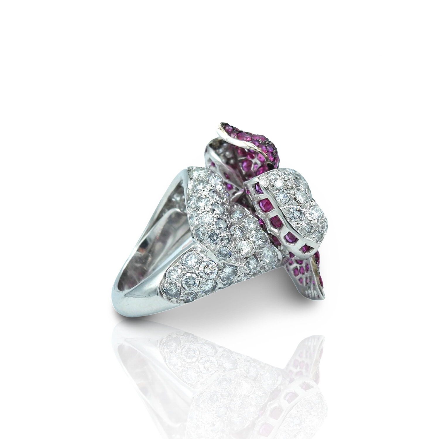 18K White Gold Diamond + Rubellite Ring // Ring Size: 7 // Pre-Owned