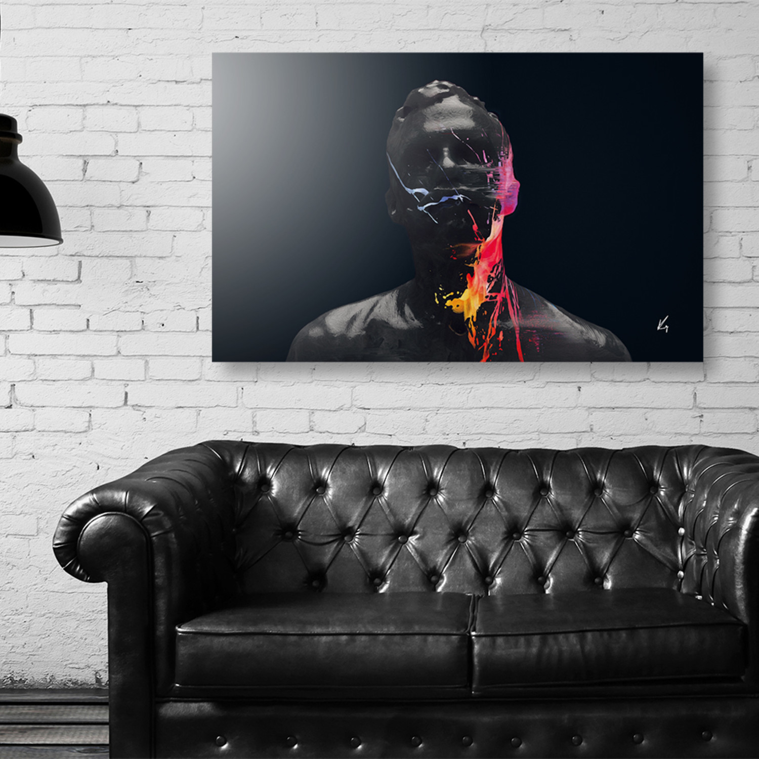Add a contemporary splash of color and drama to your living space with this incredible, three dimensional, postmodernist digital art print. This collection of aluminum prints by industrial designer and concept artist Diego Rueda uses striking colors and textures to create a dynamic sense of motion and realism. Playing with distortion, light, and shadows, Rueda’s work entices viewers to take a closer look at the intricate details that come together to create one truly breathtaking image.
