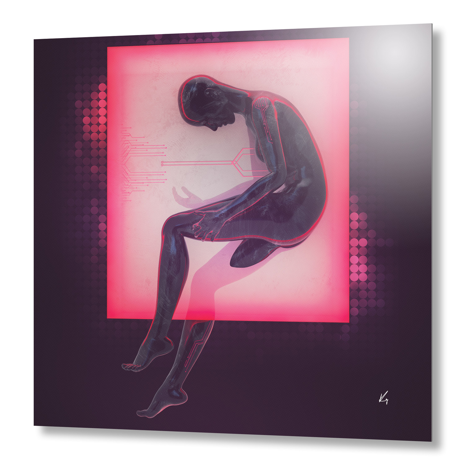 Add a contemporary splash of color and drama to your living space with this incredible, three dimensional, postmodernist digital art print. This collection of aluminum prints by industrial designer and concept artist Diego Rueda uses striking colors and textures to create a dynamic sense of motion and realism. Playing with distortion, light, and shadows, Rueda’s work entices viewers to take a closer look at the intricate details that come together to create one truly breathtaking image.