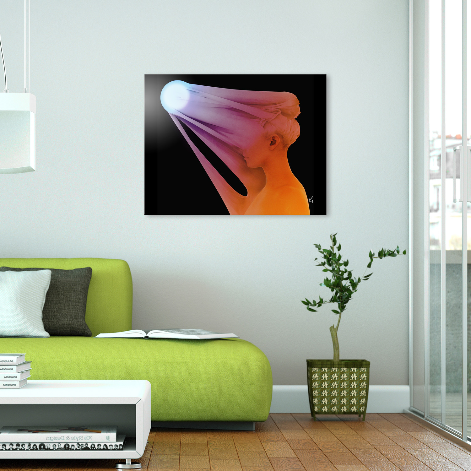 Add a contemporary splash of color and drama to your living space with this incredible, three dimensional, postmodernist digital art print. This collection of aluminum prints by industrial designer and concept artist Diego Rueda uses striking colors and textures to create a dynamic sense of motion and realism. Playing with distortion, light, and shadows, Rueda’s work entices viewers to take a closer look at the intricate details that come together to create one truly breathtaking image.