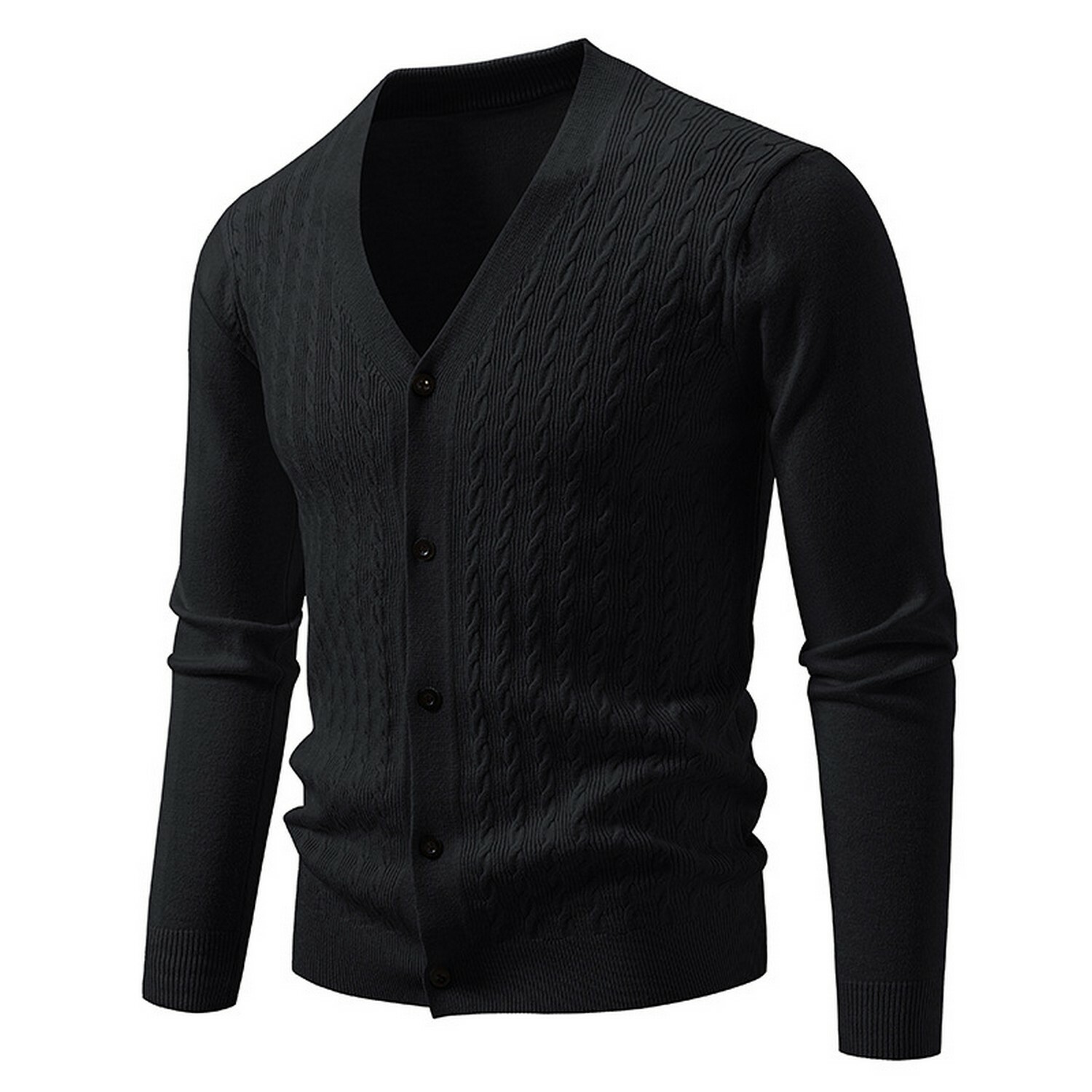 V-Neck Cable-Knit Cardigan // Black