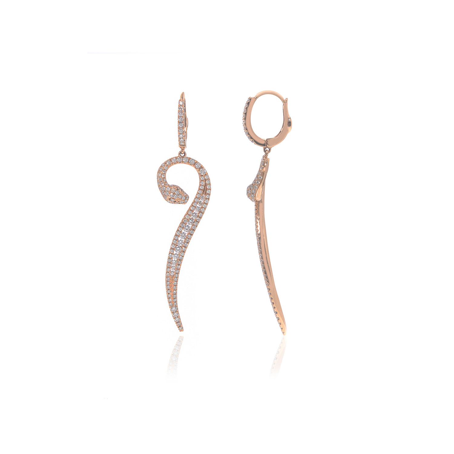 Roberto Coin 18k Rose Gold Snake Diamond Earrings // Store Display