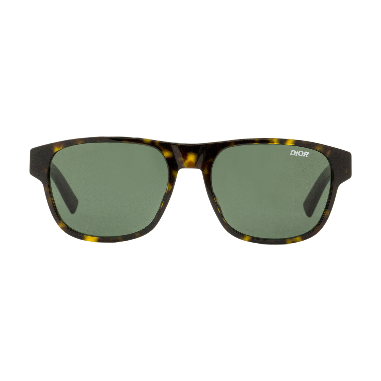 Dior Homme // Men's Flag 2 Classic Rectangular Sunglasses // Havana Black + Green