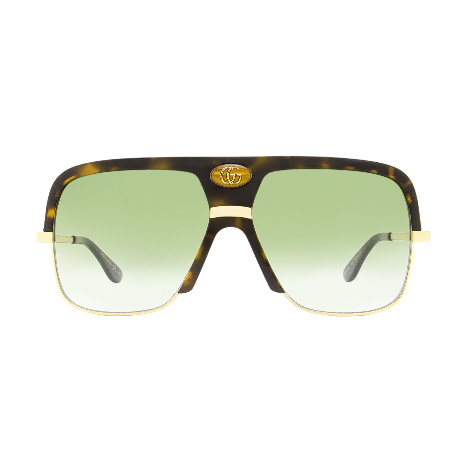 Gucci // Men's Retro Navigator Shield Sunglasses // Gold Havana + Green Gradient