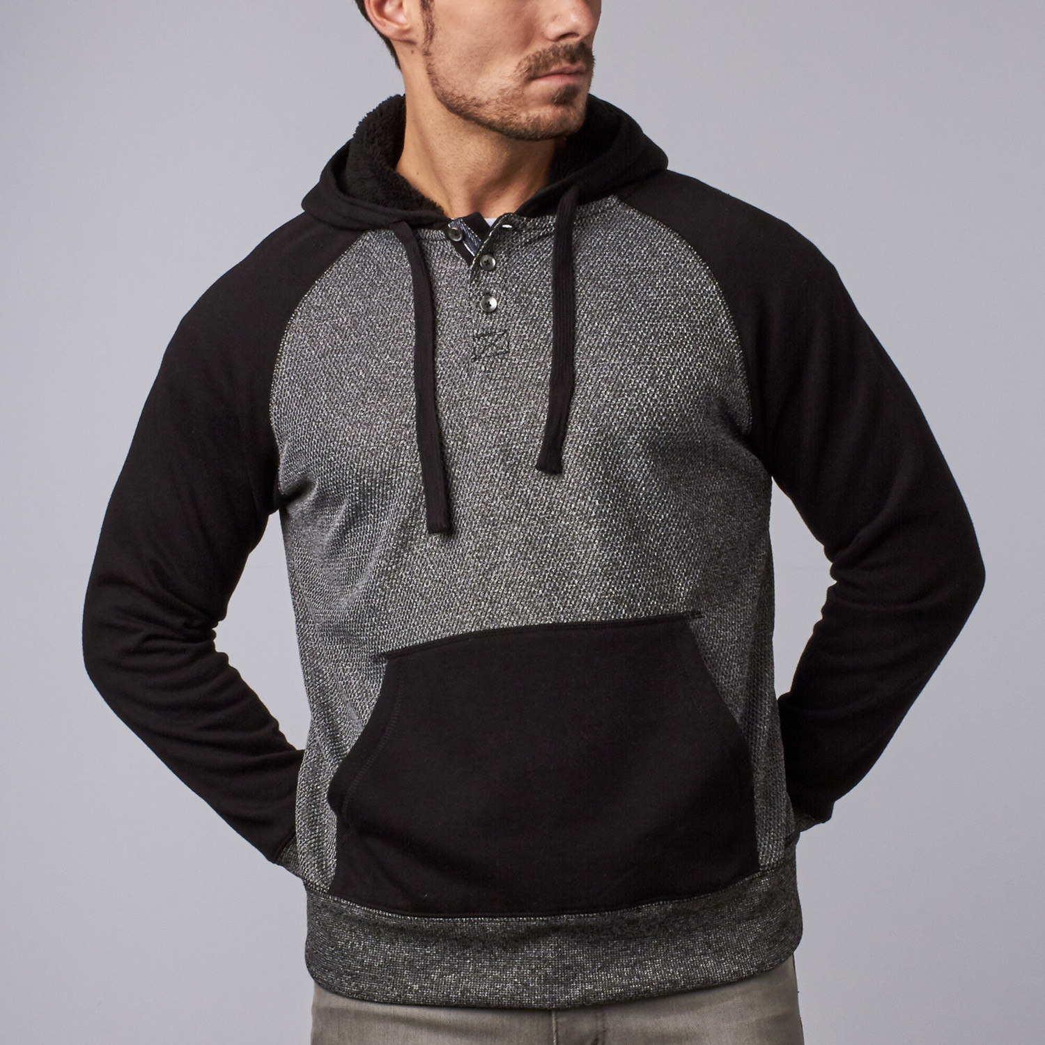 Mitchell Raglan Henley Hoodie // Black