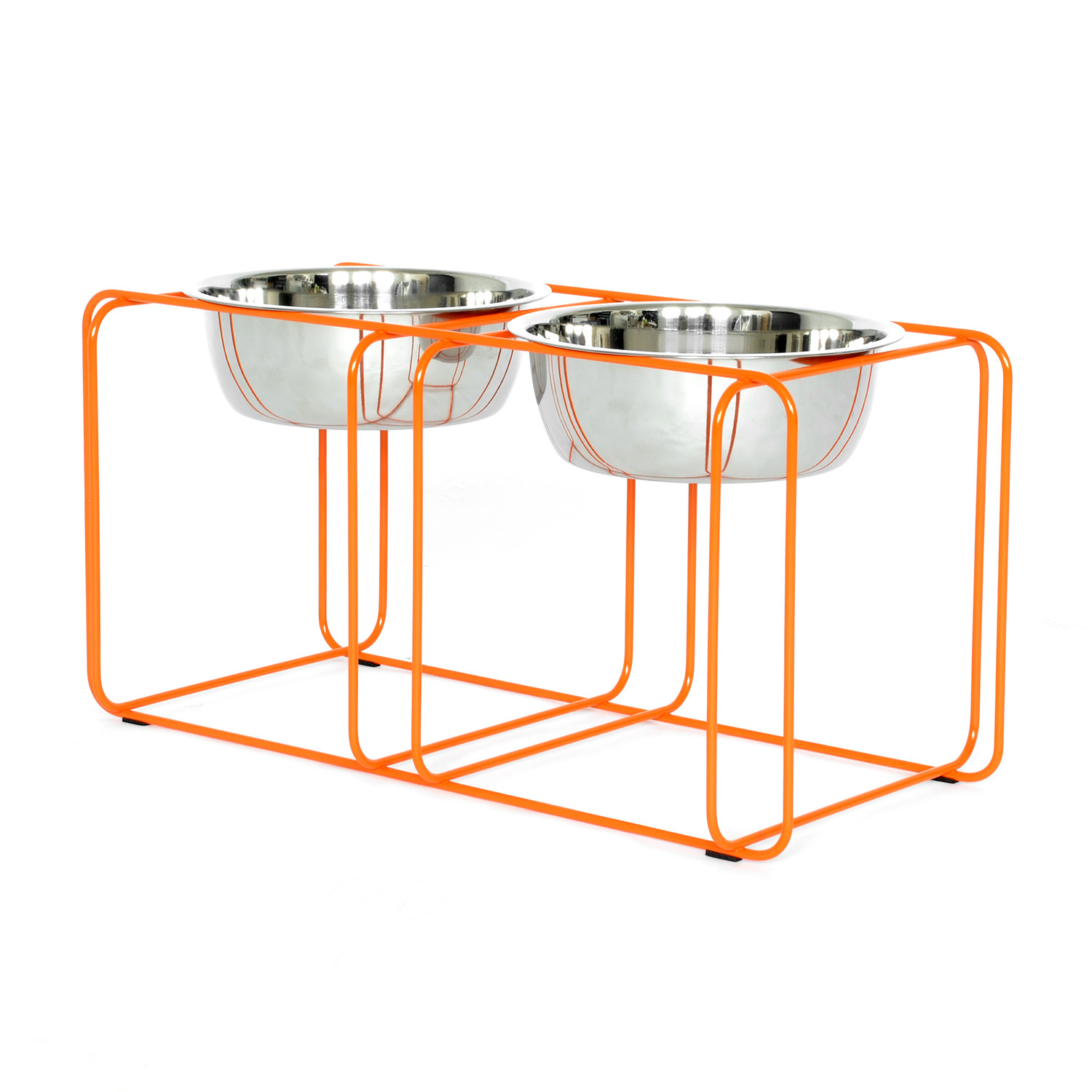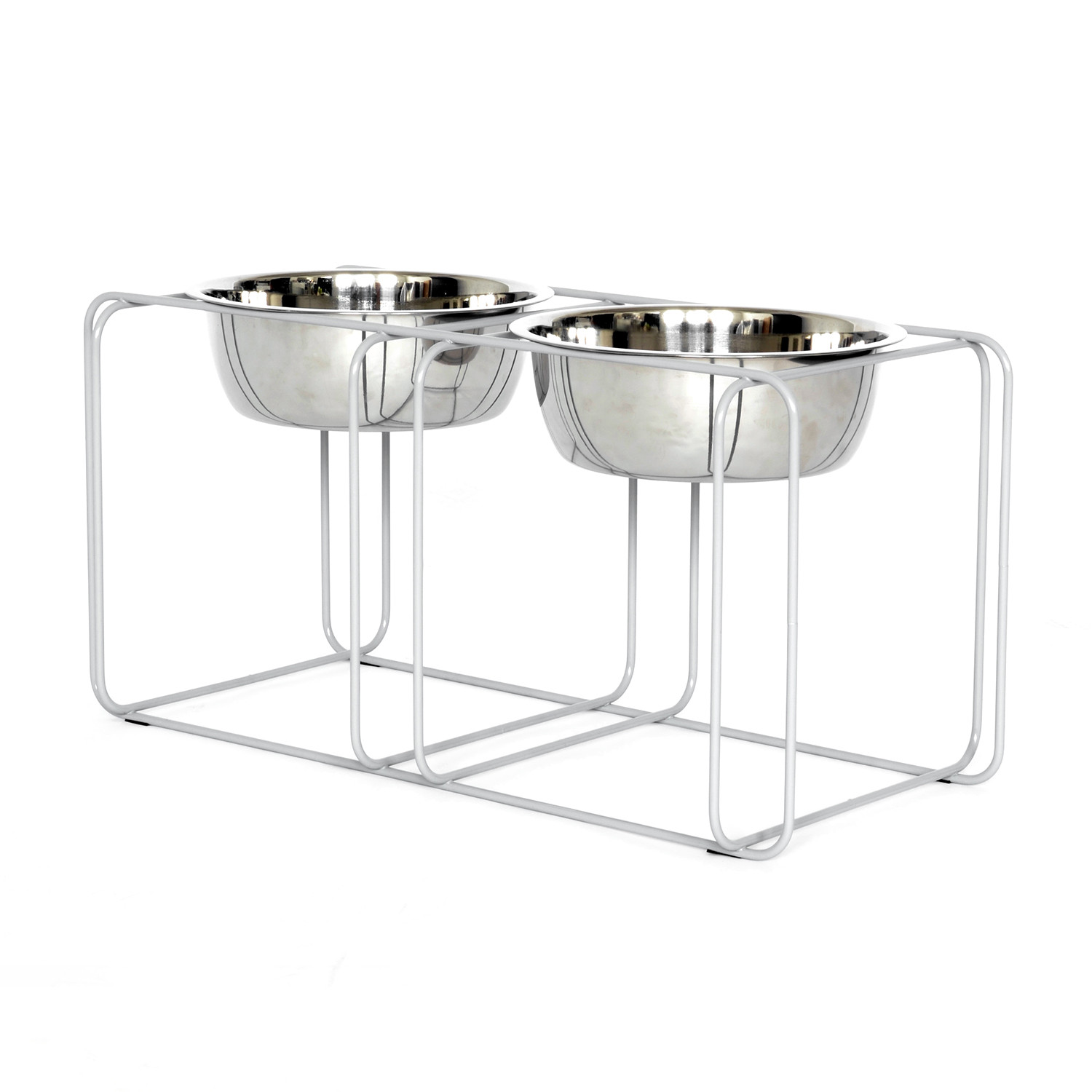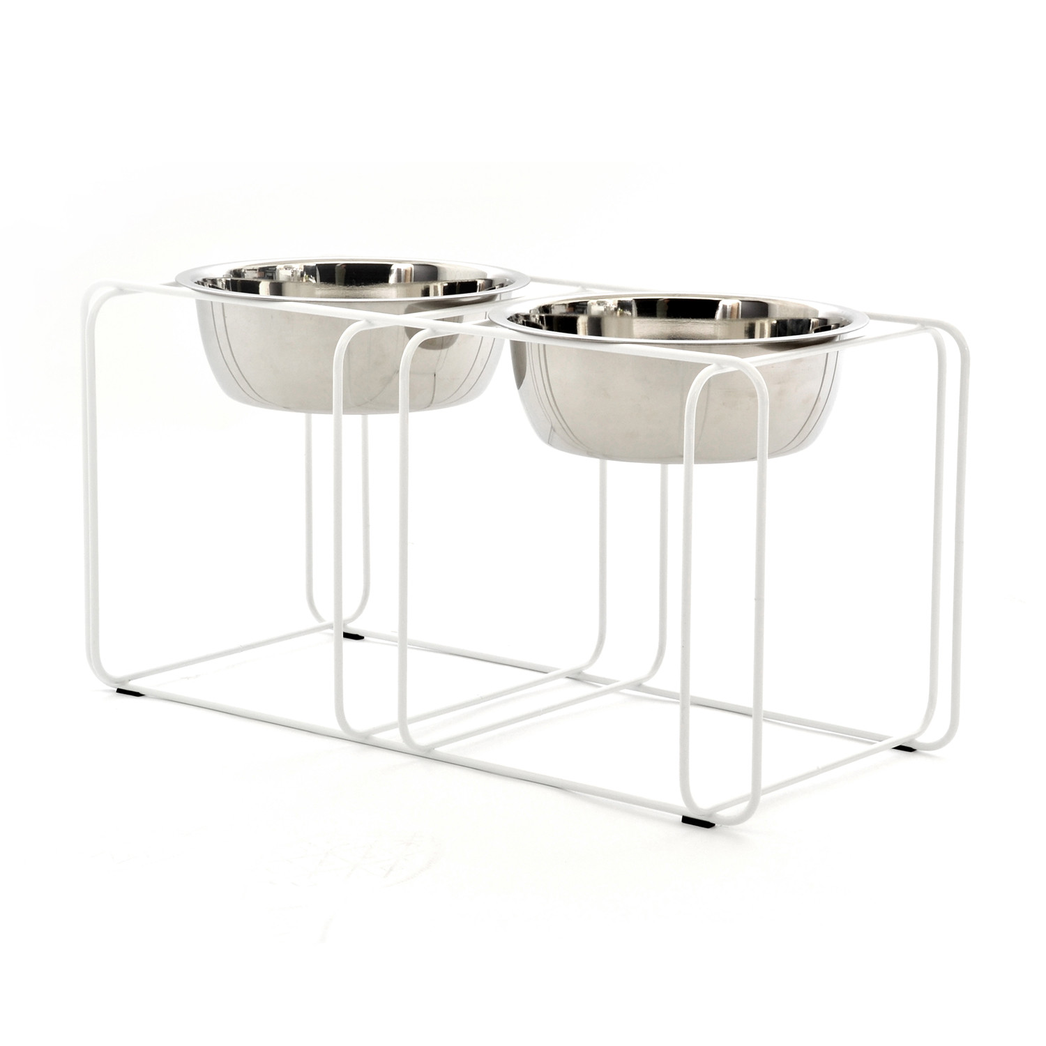 These sculptural powder coated steel pet bowl holders are made of coated wire that resists scratches and a rubber non-skid bottom. These stylish feeders keep your beloved pet's food and water off the ground too. They are the perfect modern pieces for any contemporary, pet-friendly household.
