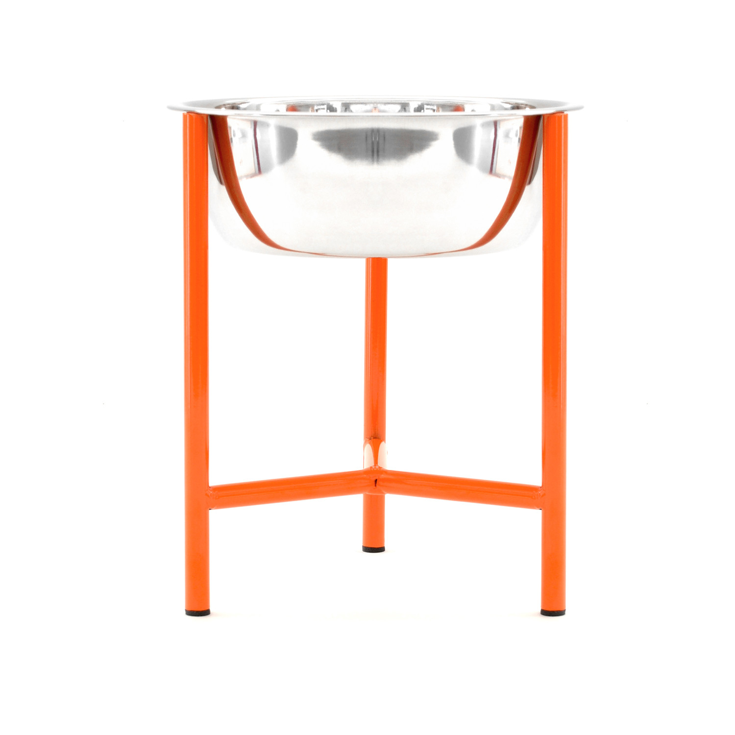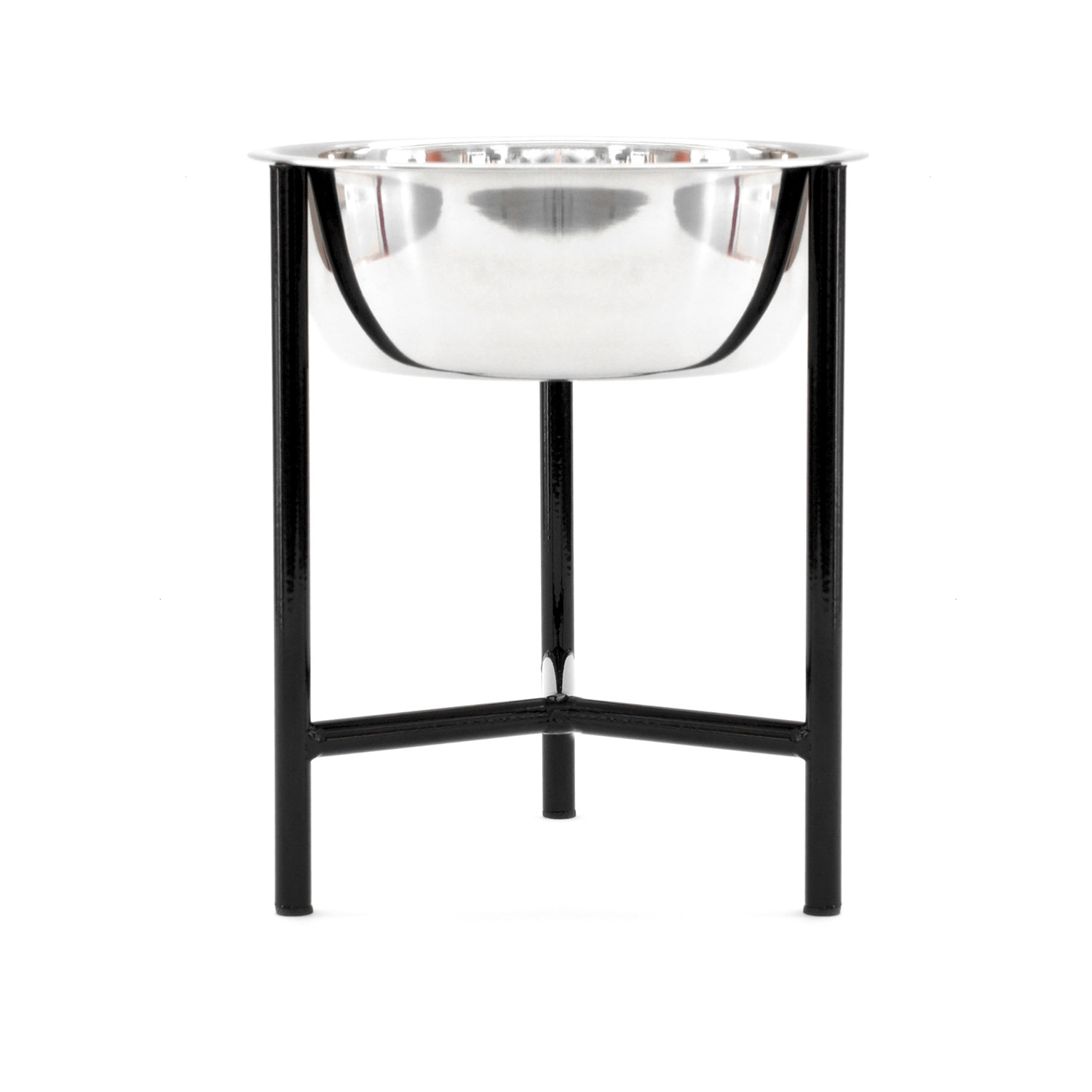 This minimal powder coated steel pet bowl stand is made of coated wire that resists scratches and a rubber non-skid bottom. These stylish feeders keep your beloved pet's food and water off the ground too. They are the perfect modern pieces for any contemporary, pet-friendly household.