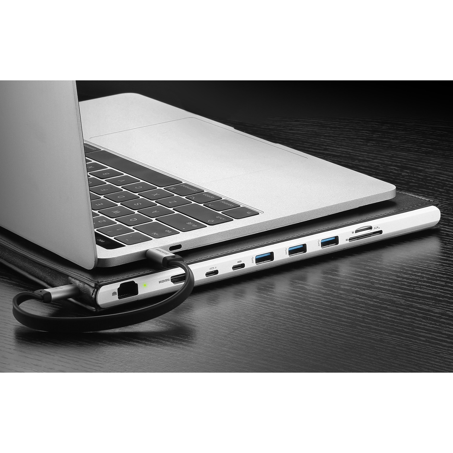 This handsome case represents the harmony of form and function that comes from thoughtful, elegant design. The exterior is crafted with a premium microfiber leather shell that maintains your device's sleek and sophisticated profile, while remaining durable enough to stand up to daily wear and tear. On the side, a sturdy, aluminum alloy dock— complete with multiple ports including USB and HDMI— let's you connect storage devices, monitors, printers, and more together, not one after the other, so you can work smarter and carry around less.