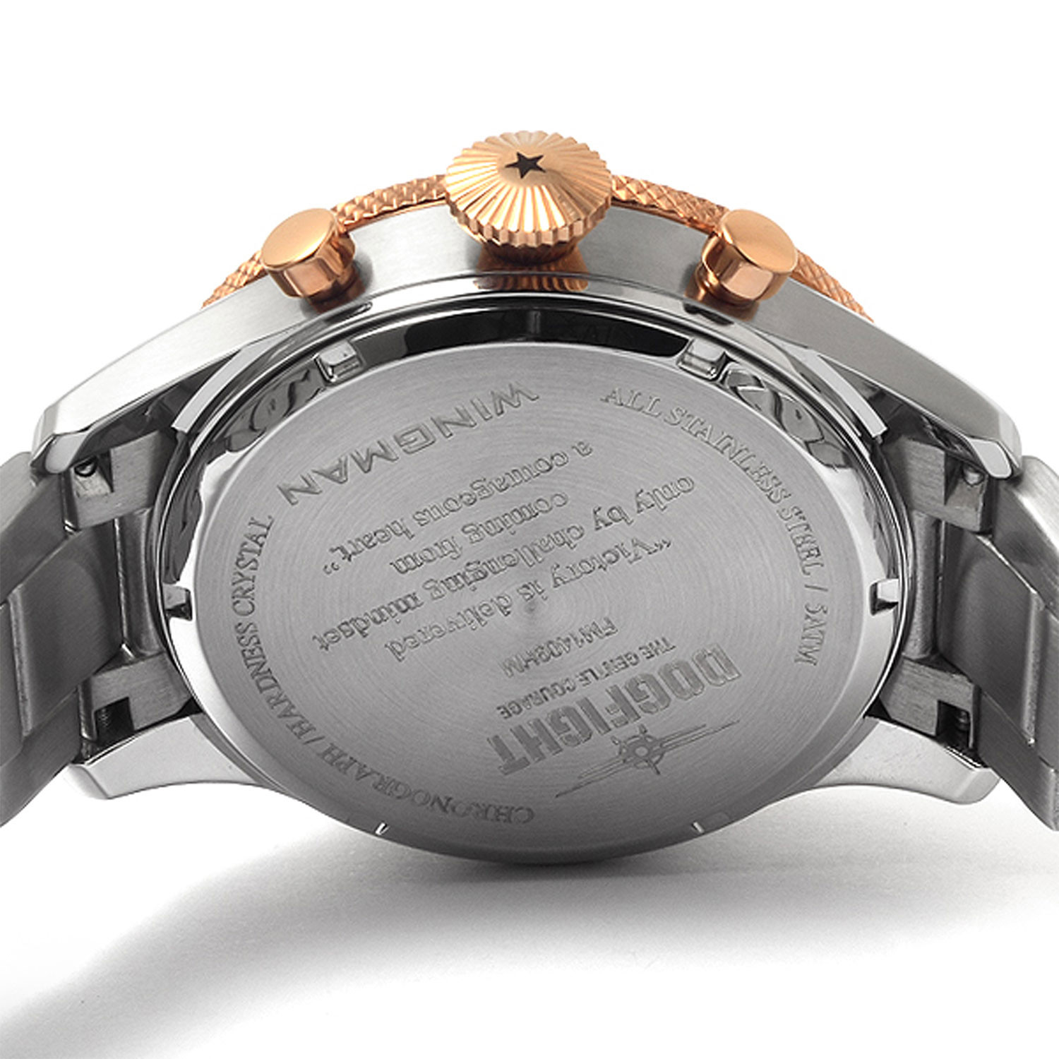No victory is possible without a wingman, the hidden contributor to each win. The Dogfight Wingman Quartz is a modern style inspired by the agility and improvisational flying skills of the old school American wingman. With retro inspired finished and exceptional craftsmanship, this stunning timepiece is a fitting tribute to those who are always in the wings.