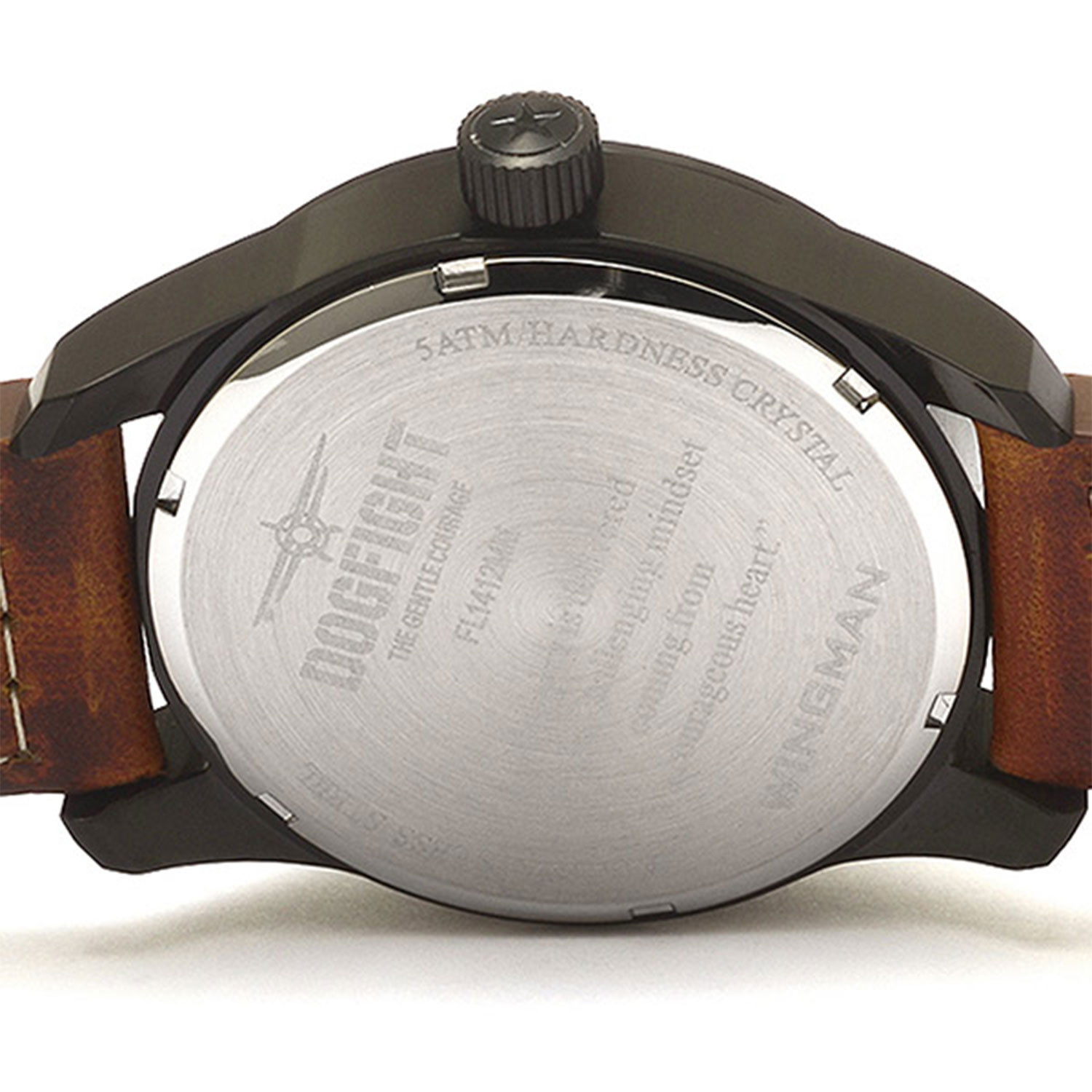 No victory is possible without a wingman, the hidden contributor to each win. The Dogfight Wingman Quartz is a modern style inspired by the agility and improvisational flying skills of the old school American wingman. With retro inspired finished and exceptional craftsmanship, this stunning timepiece is a fitting tribute to those who are always in the wings.