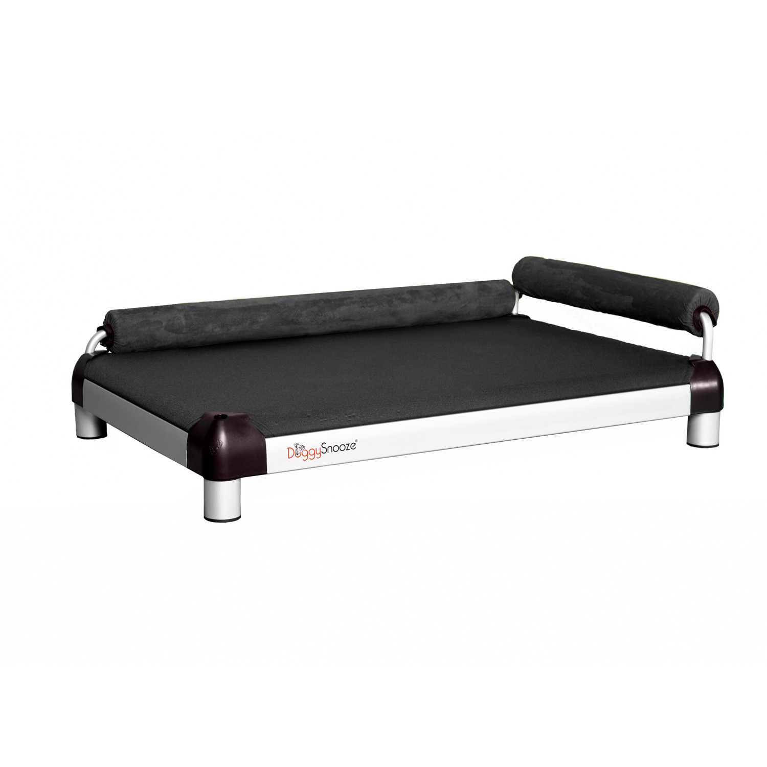 The DoggySnooze Lounge is an excellent elevated, orthopedic, chew-resistant (aluminum alloy frame) bed for dogs who like to lean and rest their head on your lap. The bed's orthopedic memory foam gives your dog a healthy, supportive, and comfortable place to rest and sleep. Additionally the soft suede bolster covers, durable microsuede bed layer, and memory foam insert work together to make this the optimal place for your pal to sit back and relax after a long, fun day at the dog park.