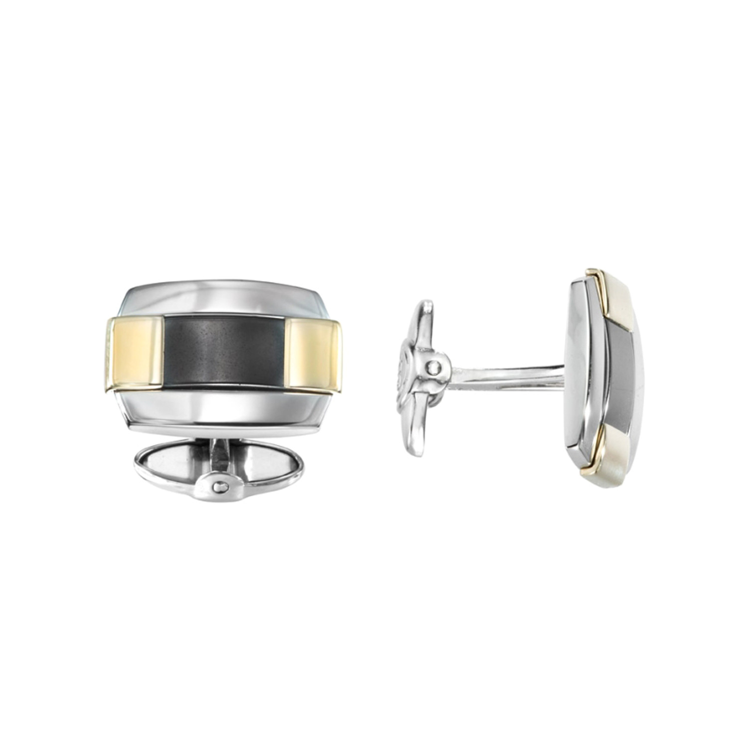 This Rolled Top + Hematite Cufflink set is certain to hit the spot stylistically. Its incredible combination of fine materials — from its sterling silver base to its inlaid black hematite and 14k gold details, really help make this final detail one of undeniable finesse.