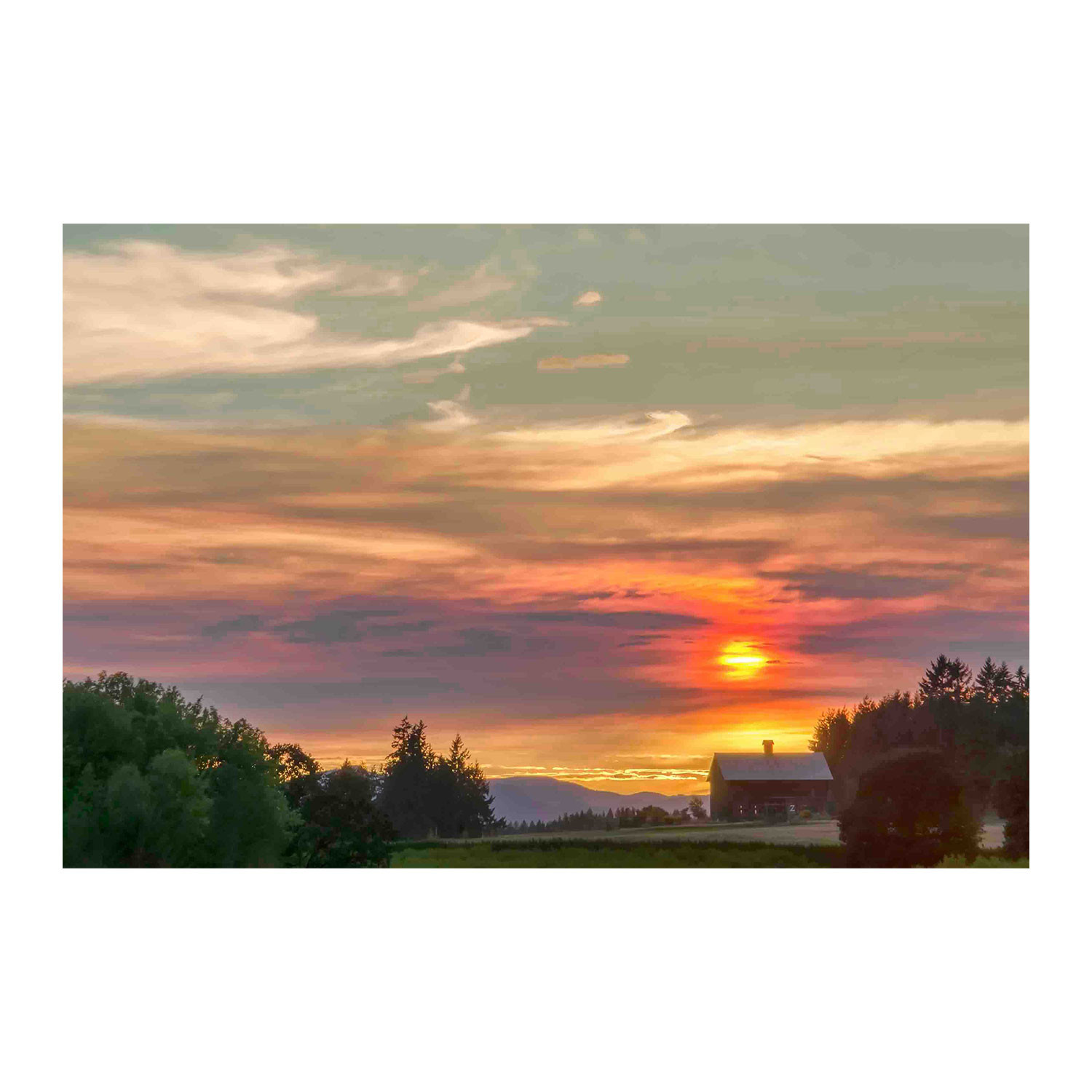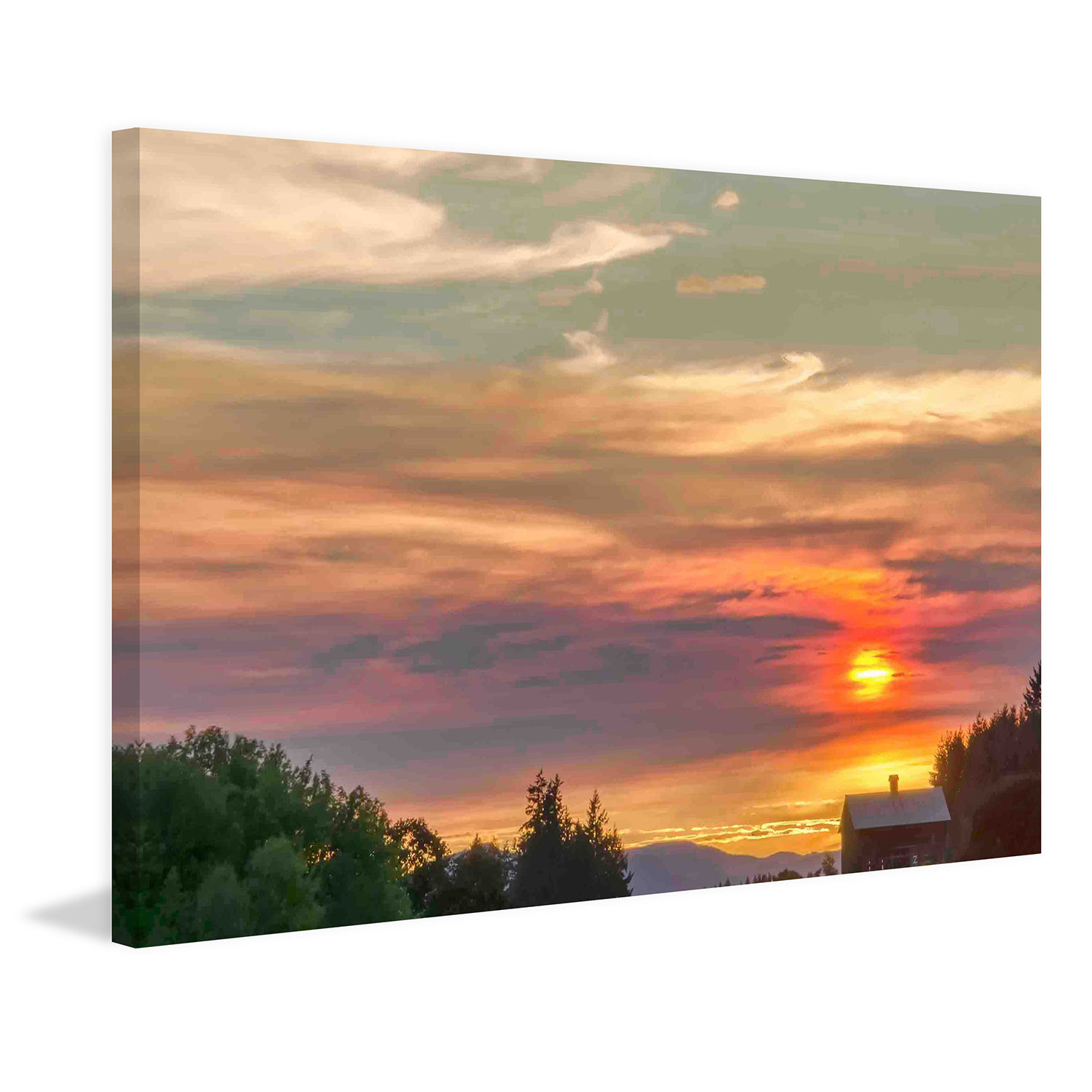 Barn on the Ridge at Sunset // Painting Print on Wrapped Canvas