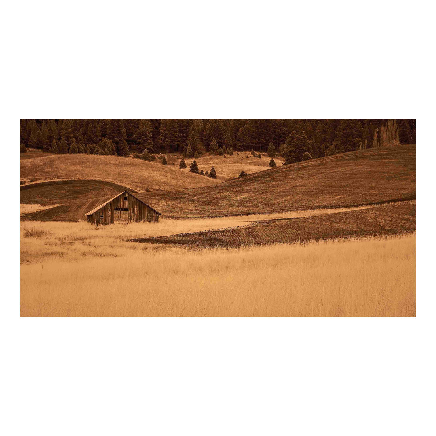 Brown Barn in the Blonde Grasses // Painting Print on Wrapped Canvas