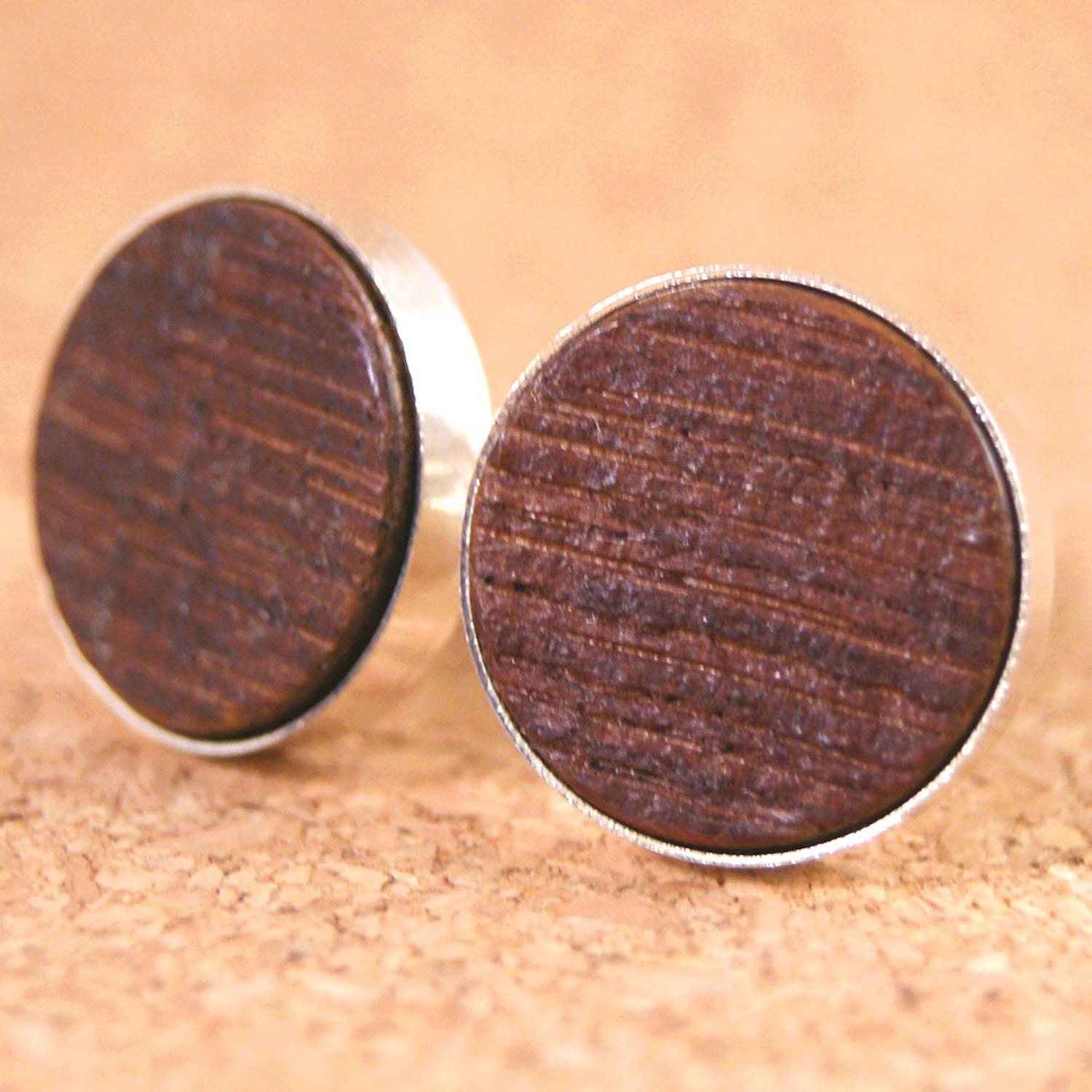 Thin Silver Bezel Round Whiskey Barrel Cufflinks