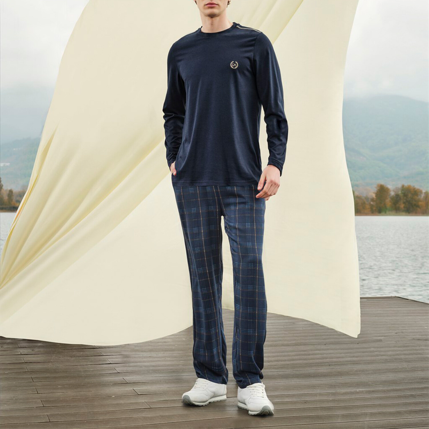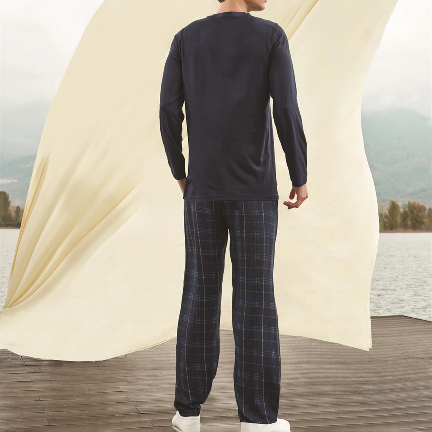 Alex Long Sleeve + Trouser Lounge Set // Navy + Plaid